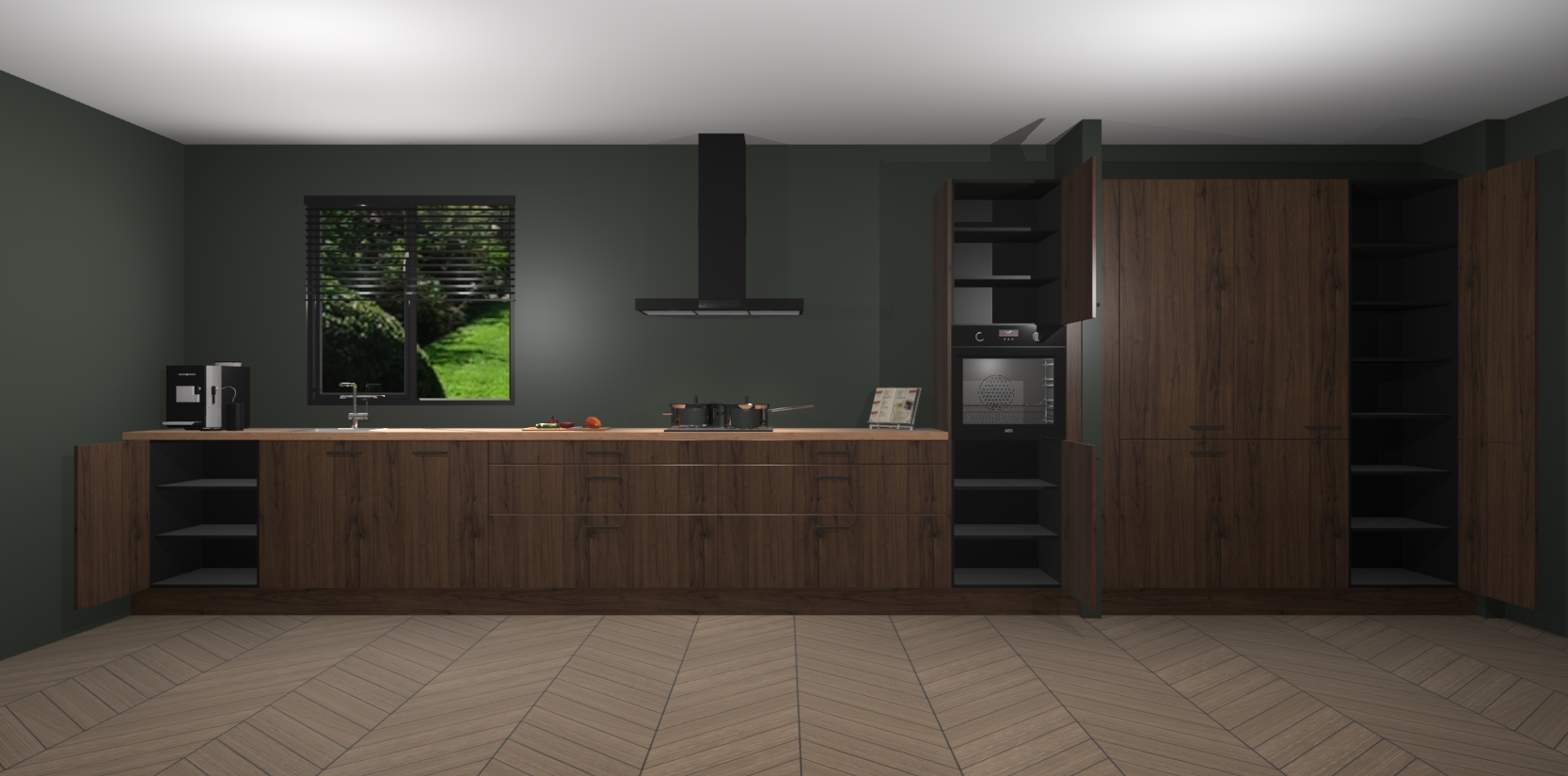 Dankzij de afwerking past de Noten keuken Angola naadloos in elk huis of appartement. De soft-close deuren geven je extra gemoedsrust, want ze sluiten vanzelf en slaan nooit dicht! En alsof dat nog niet genoeg is, worden deze kasten volledig gemonteerd geleverd, dus maak je geen zorgen over eventuele installatieproblemen.