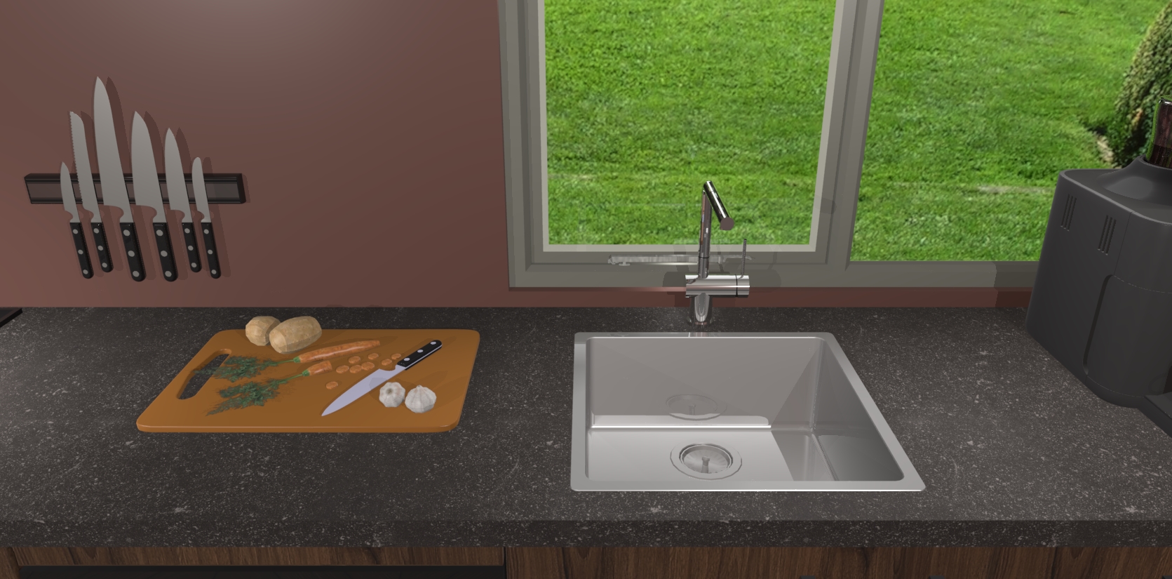 - De spoelbak is nog niet in gevreesd. Dit dient tijdens het werk gedaan te worden