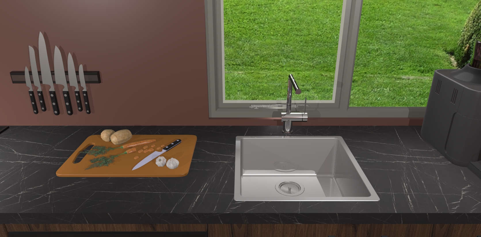 - De spoelbak is nog niet in gevreesd. Dit dient tijdens het werk gedaan te worden