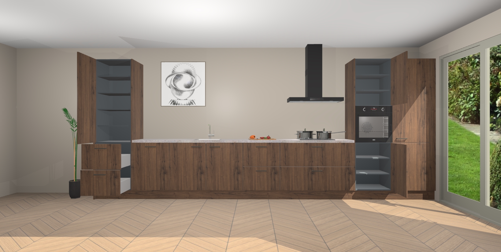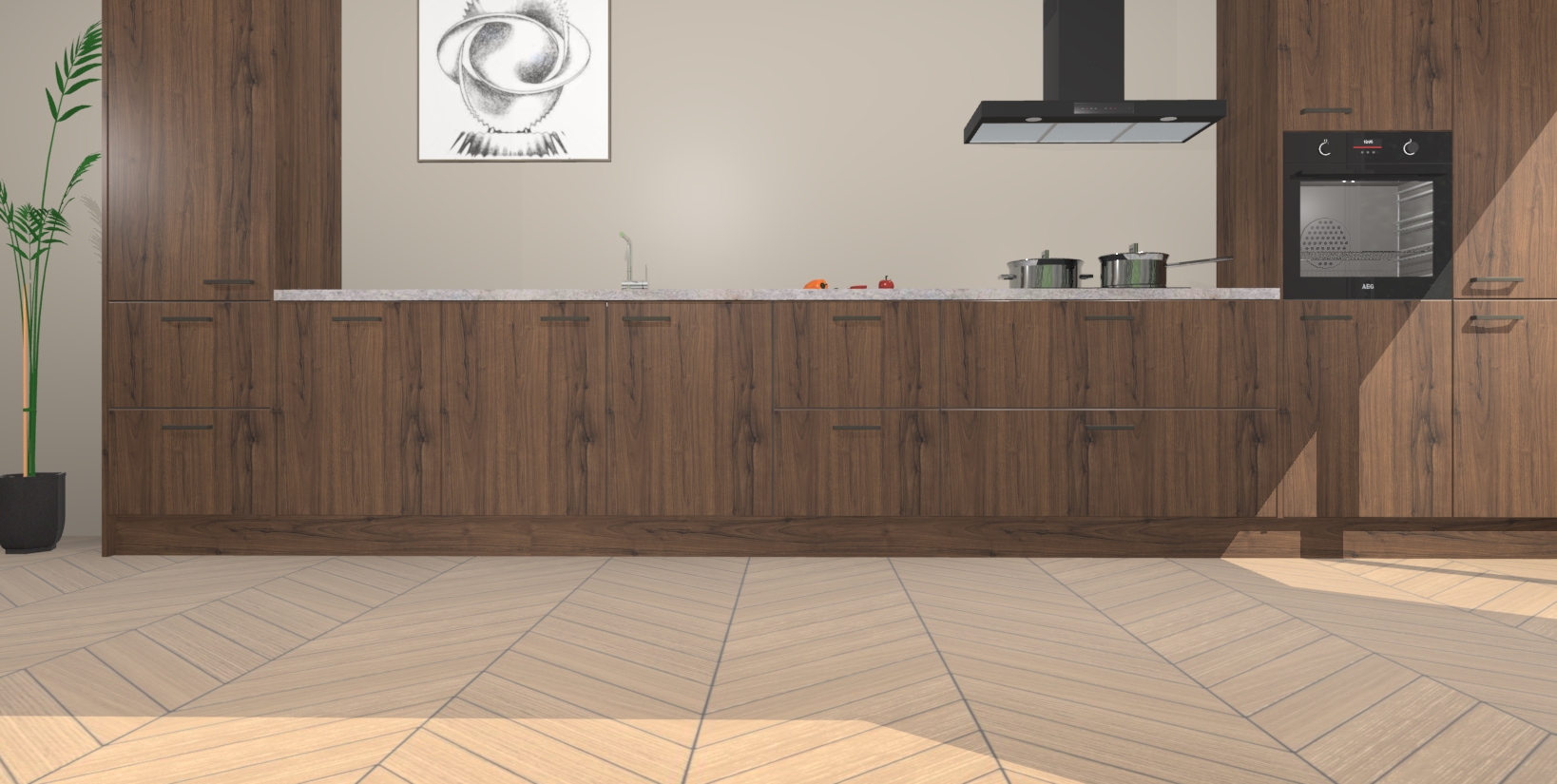 Inclusief plinten, stelpoten en werkblad