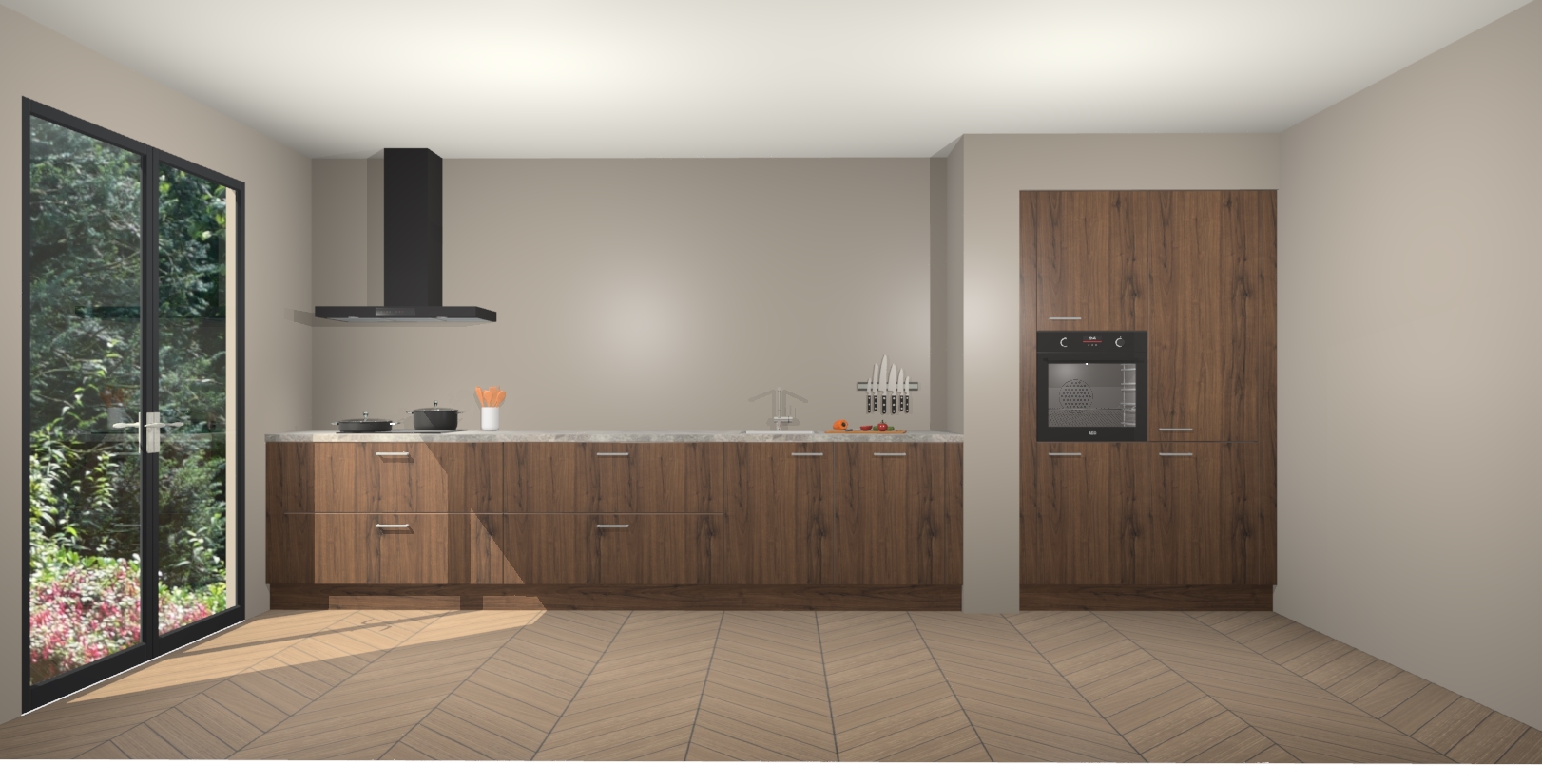 Maak kennis met de Noten keuken Calgary - de perfecte aanvulling voor uw moderne keuken! Ervaar tijdloos design, elegantie en een chique uitstraling met onze handgrepen, soft-close deuren en veel opbergruimte. Dit alles wordt aangeboden tegen een vaste lage prijs voor ongeëvenaarde Duitse keukenkwaliteit!