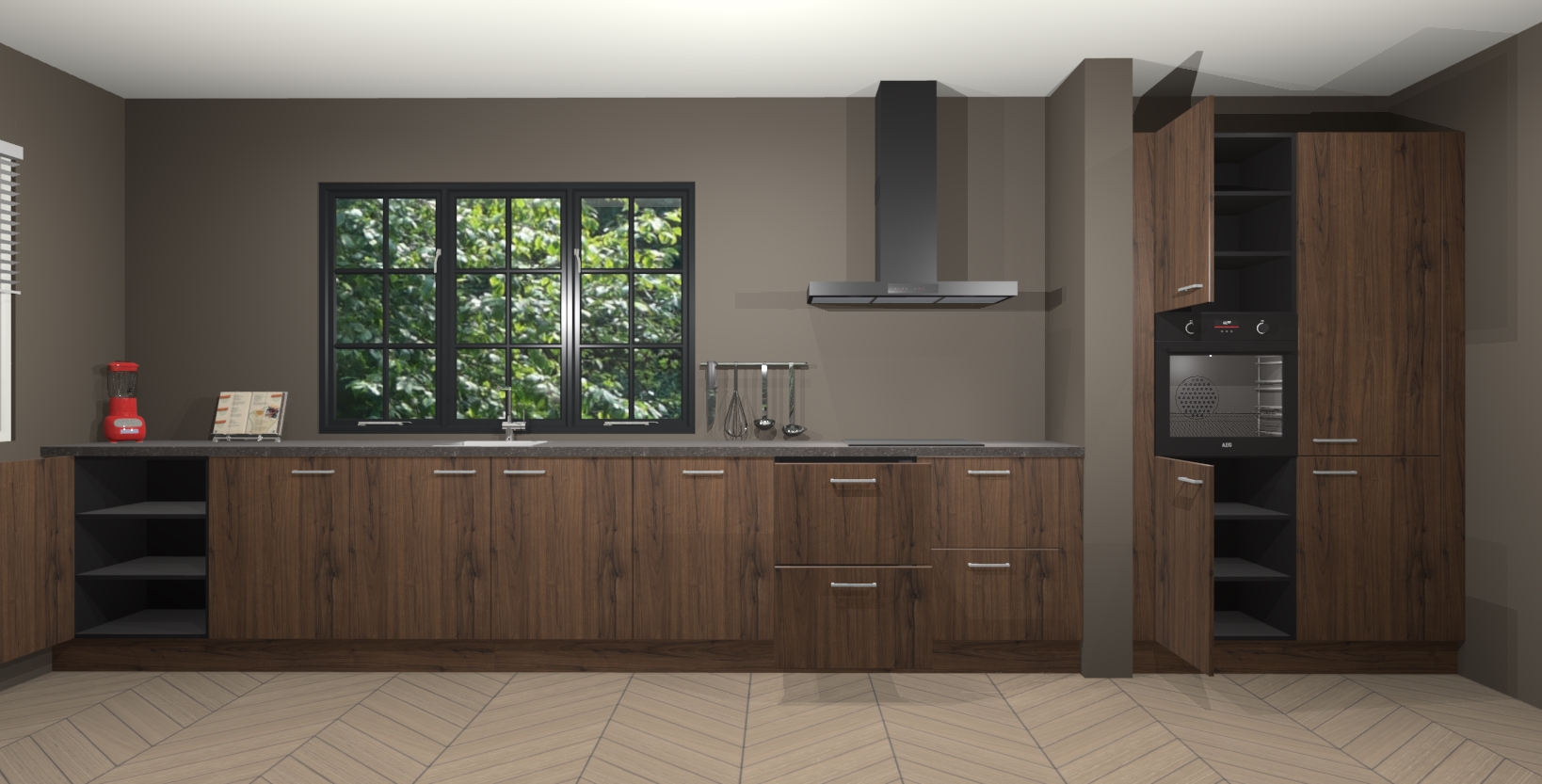 Maak kennis met de Noten keuken Elzas - de perfecte aanvulling voor uw moderne keuken! Ervaar tijdloos design, elegantie en een chique uitstraling met onze handgrepen, soft-close deuren en veel opbergruimte. Dit alles wordt aangeboden tegen een vaste lage prijs voor ongeëvenaarde Duitse keukenkwaliteit!