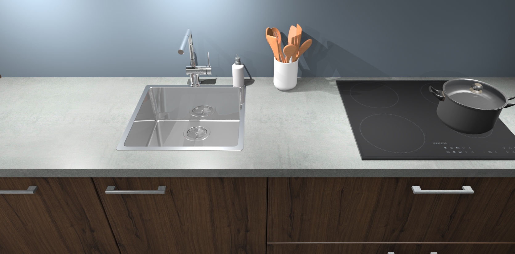 • Bij een hoekwerkblad zijn de hoeken in gevreesd en op maat gemaakt