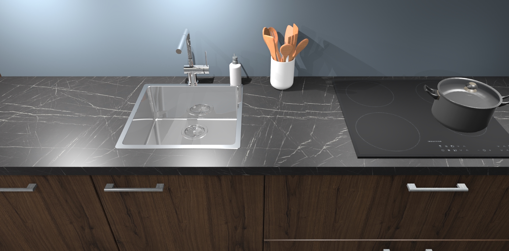 - Bij een hoekwerkblad zijn de hoeken in gevreesd en op maat gemaakt