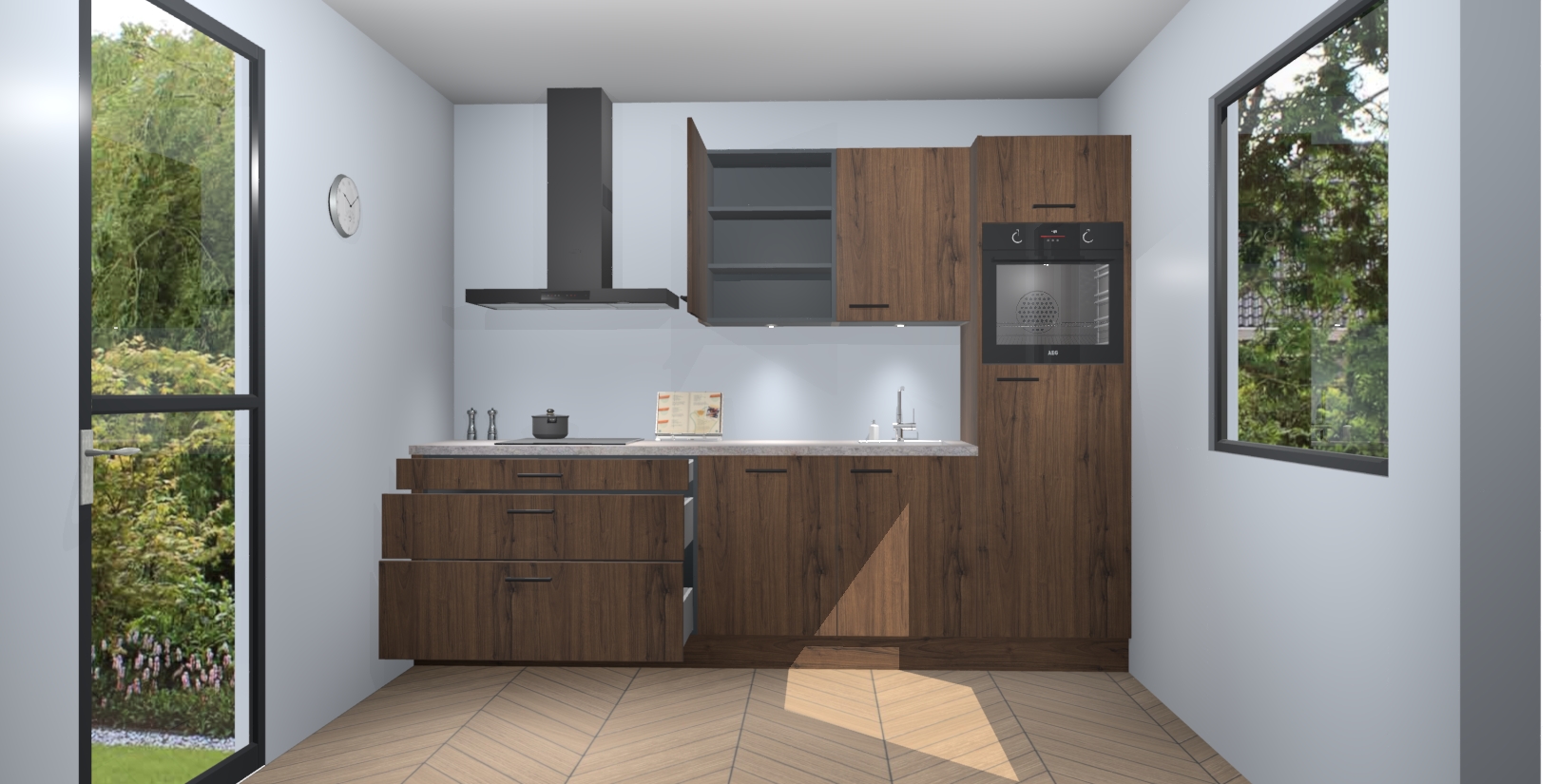 In deze box zijn alle kleuren verzameld van de deuren en werkbladen. Vraag de gratis kleurenbox aan en kijk thuis rustig verder!