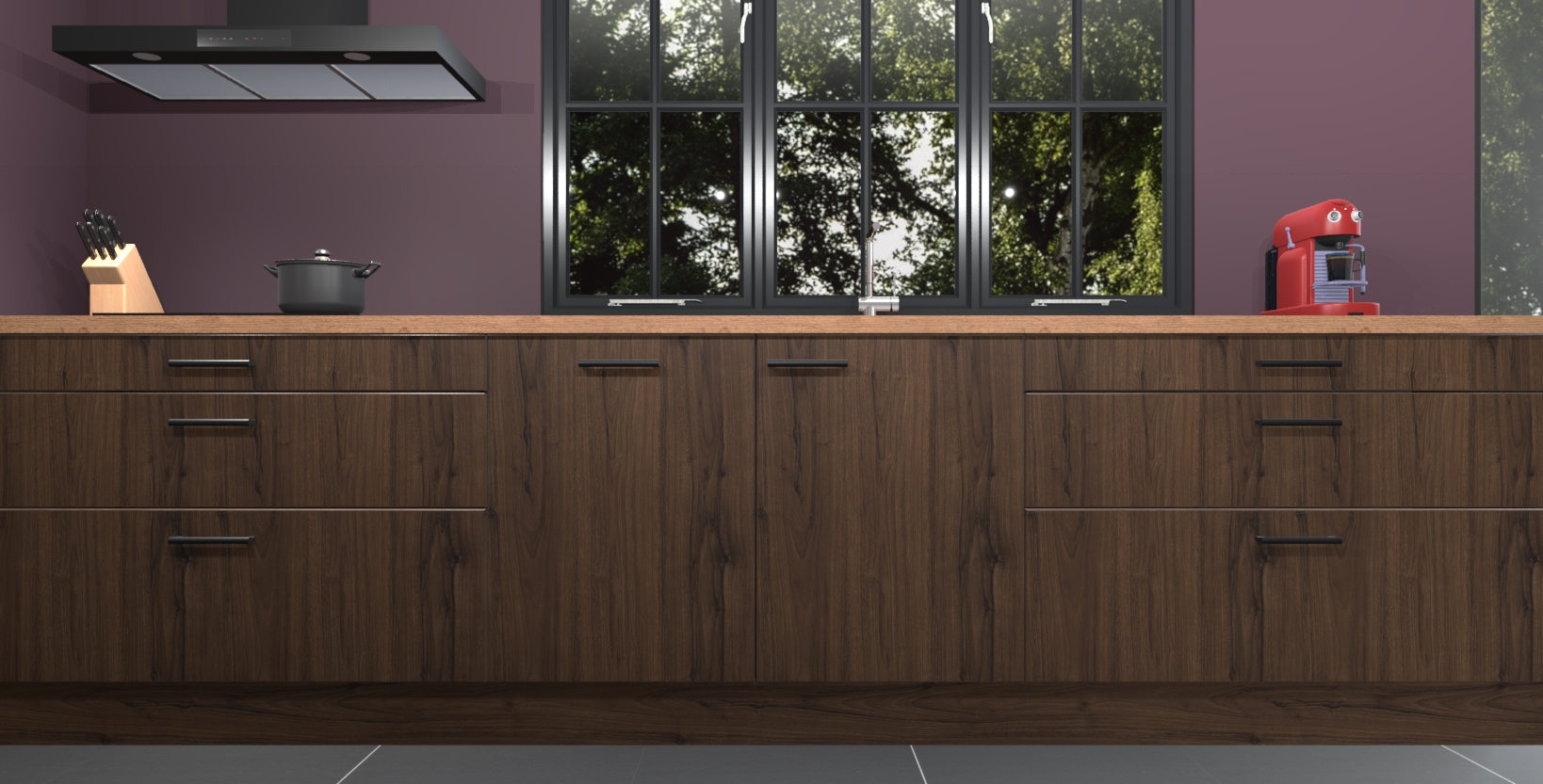 De softclose deuren openen en sluiten is ook heel eenvoudig - geniet van een moeiteloze keukenervaring, zelfs als er kinderen rondlopen. Voor extra gemak bij het plaatsen van uw bestelling bieden we ook een upgrade naar een kookplaat met geïntegreerde afzuiging.