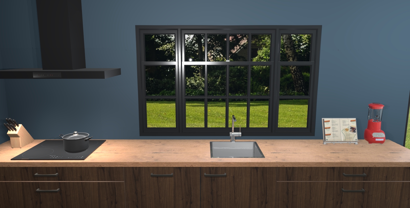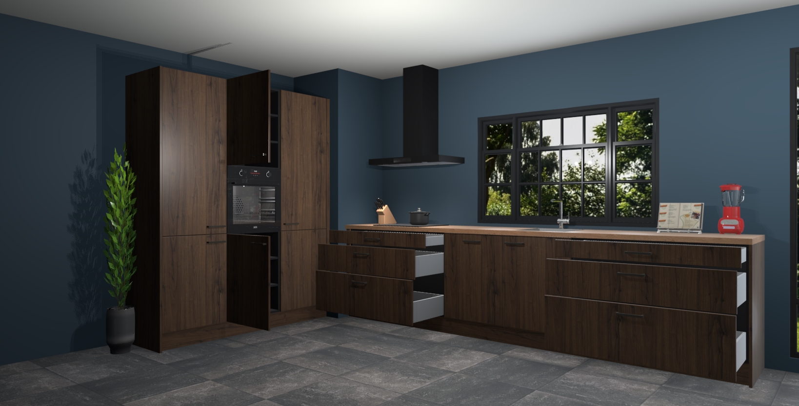 De softclose deuren openen en sluiten is ook heel eenvoudig - geniet van een moeiteloze keukenervaring, zelfs als er kinderen rondlopen. Voor extra gemak bij het plaatsen van uw bestelling bieden we ook een upgrade naar een kookplaat met geïntegreerde afzuiging.