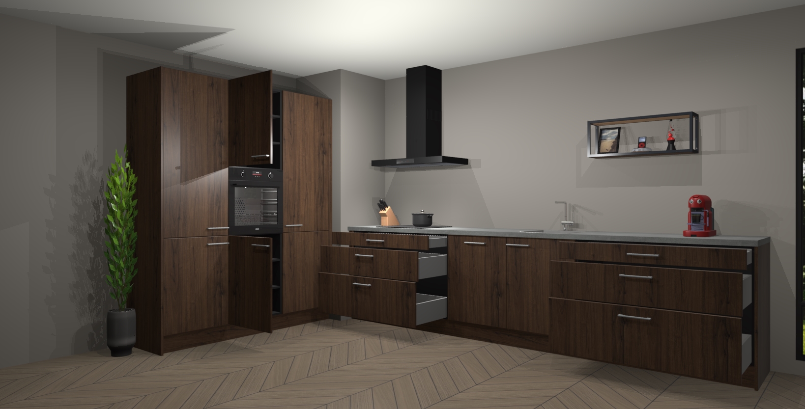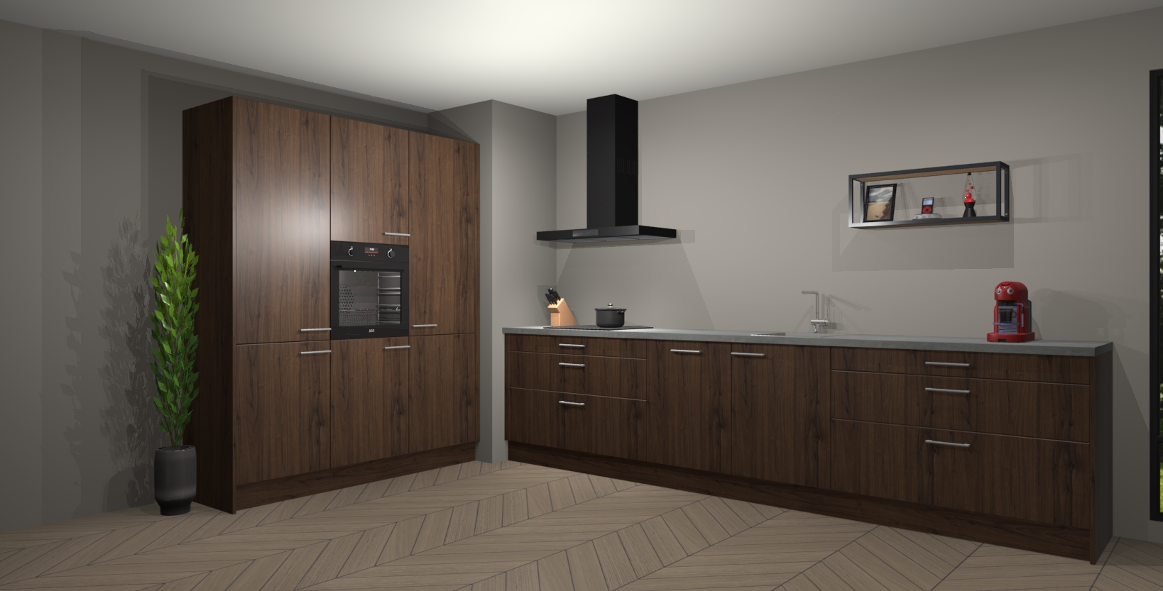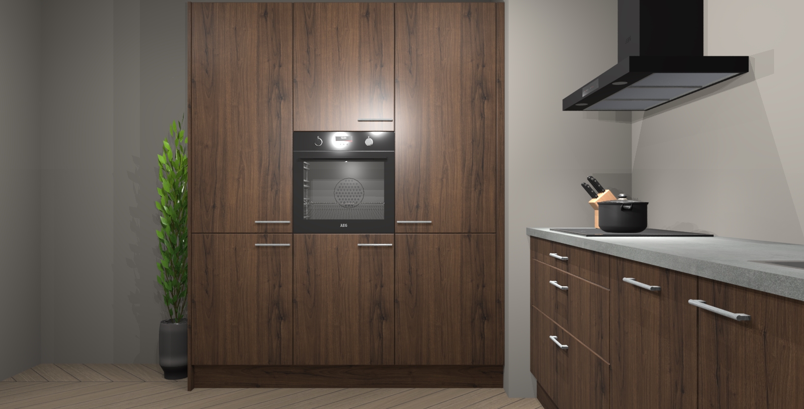 De softclose deuren openen en sluiten is ook heel eenvoudig - geniet van een moeiteloze keukenervaring, zelfs als er kinderen rondlopen. Voor extra gemak bij het plaatsen van uw bestelling bieden we ook een upgrade naar een kookplaat met geïntegreerde afzuiging.