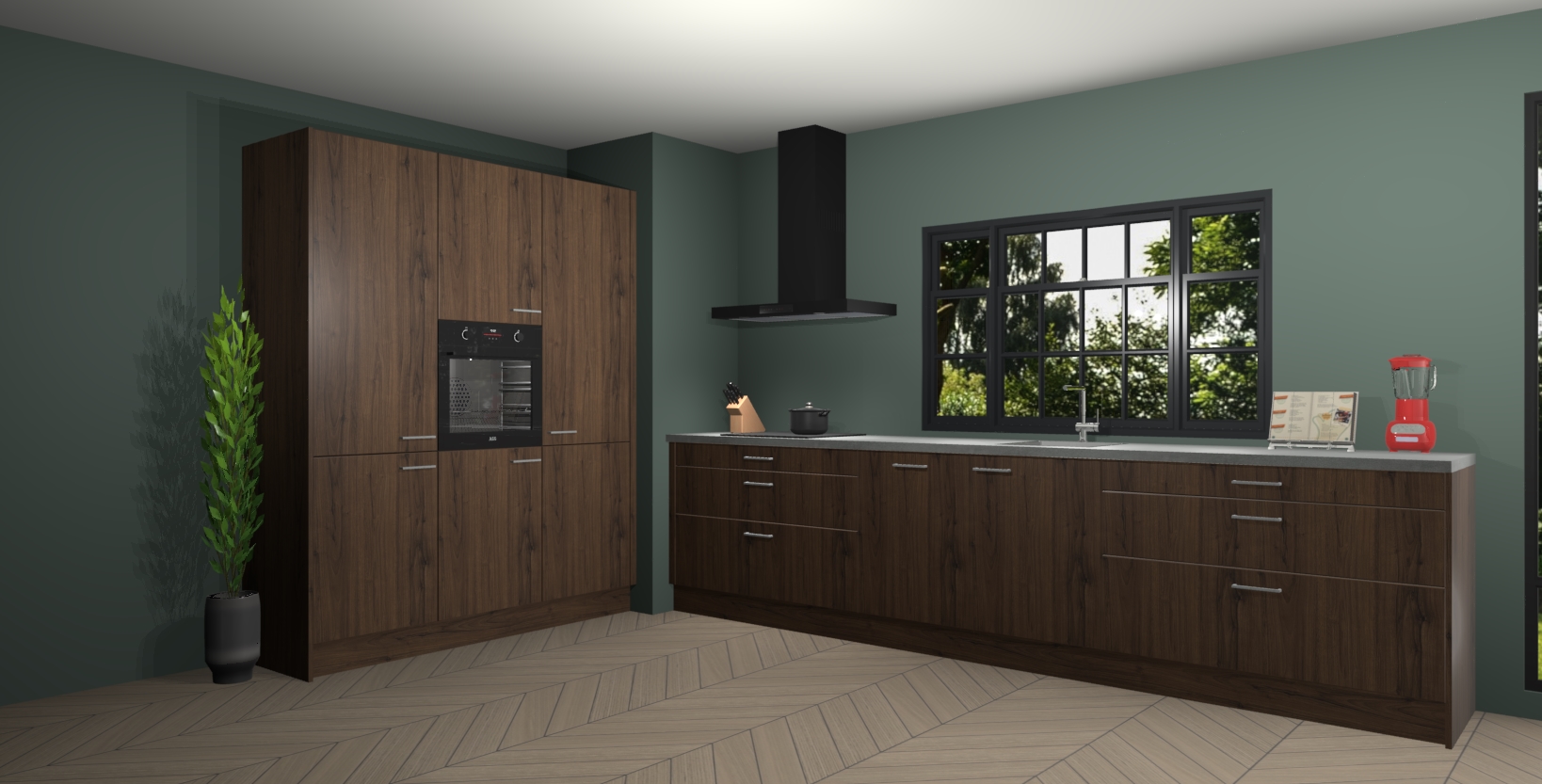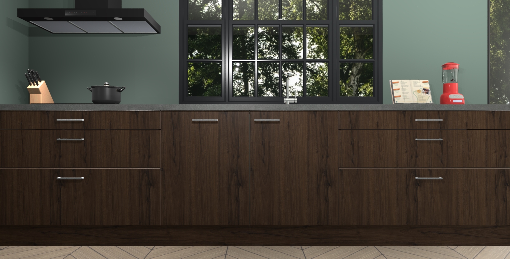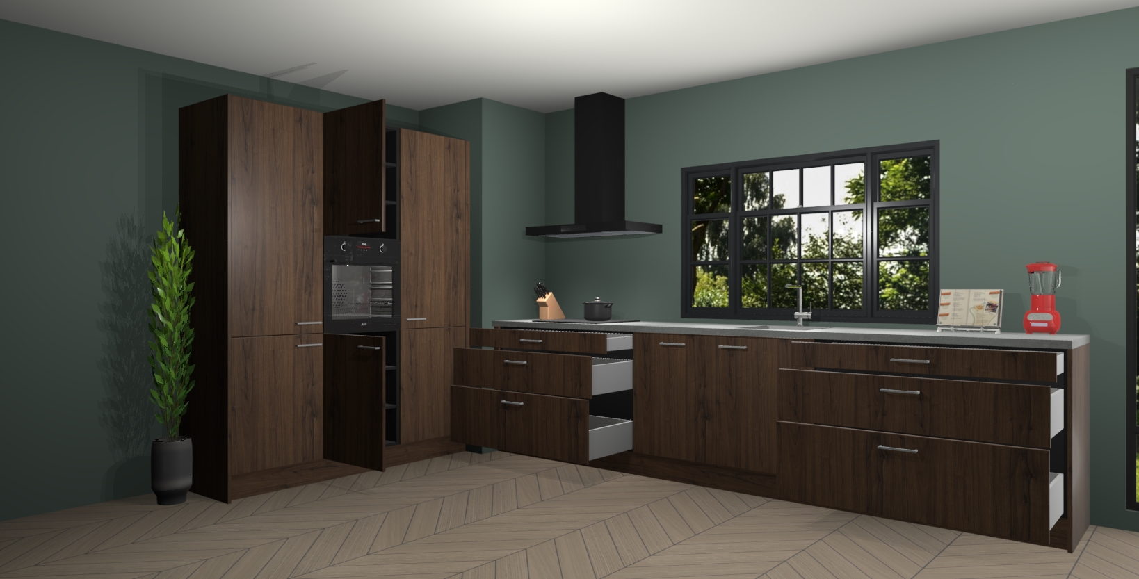 De softclose deuren openen en sluiten is ook heel eenvoudig - geniet van een moeiteloze keukenervaring, zelfs als er kinderen rondlopen. Voor extra gemak bij het plaatsen van uw bestelling bieden we ook een upgrade naar een kookplaat met geïntegreerde afzuiging.