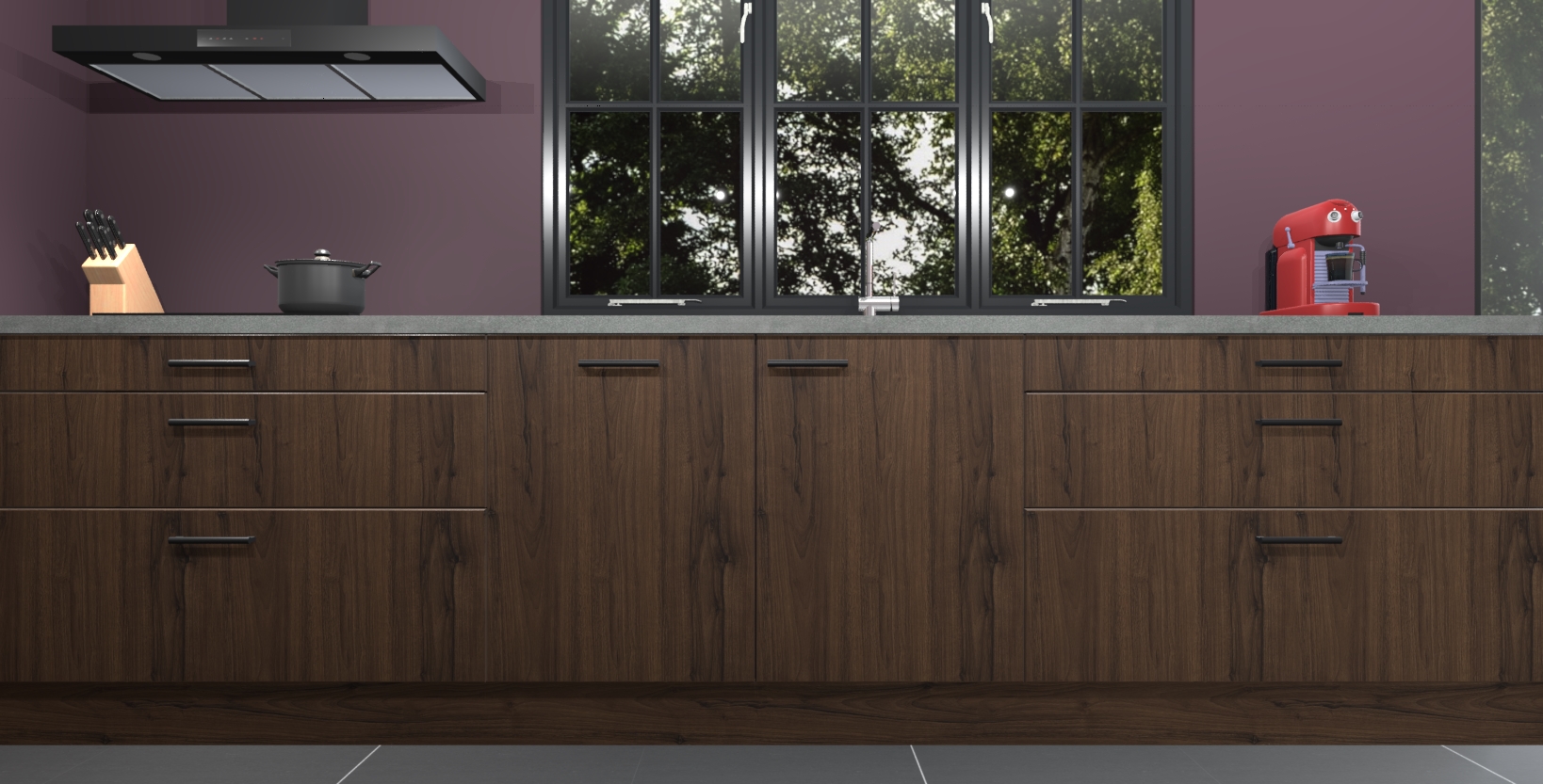 De softclose deuren openen en sluiten is ook heel eenvoudig - geniet van een moeiteloze keukenervaring, zelfs als er kinderen rondlopen. Voor extra gemak bij het plaatsen van uw bestelling bieden we ook een upgrade naar een kookplaat met geïntegreerde afzuiging.
