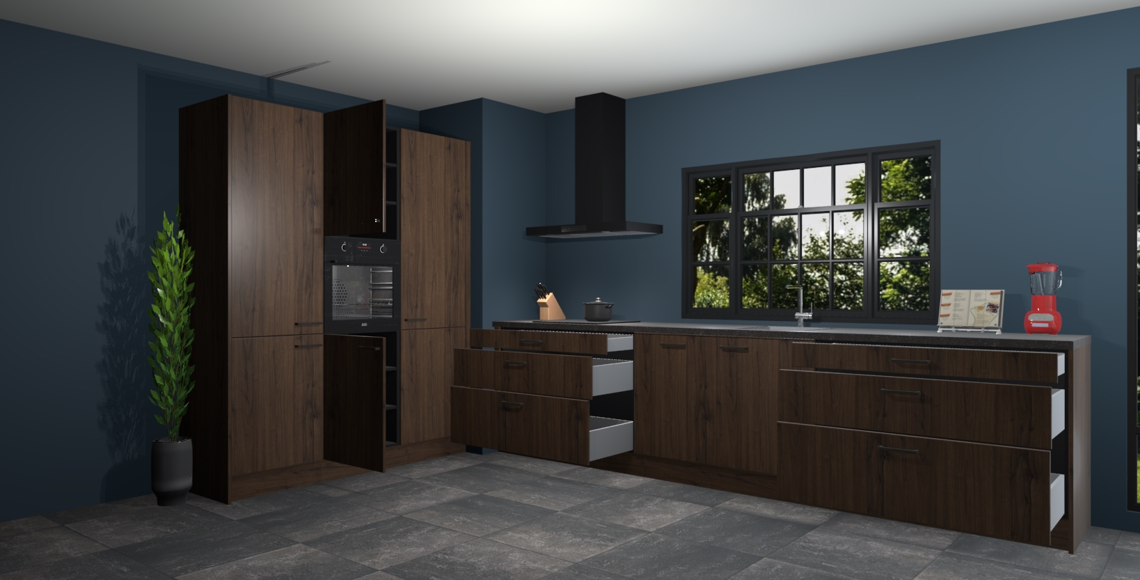 De Noten keuken Marseille, een mooie en verbluffende toevoeging aan uw keuken, is een kunstwerk met zijn luxe design en unieke combinatie van Noten met een houten blad. Geniet van eersteklas vakmanschap dat zorgt voor jarenlange betrouwbaarheid in een strak Europees hedendaags ontwerp.