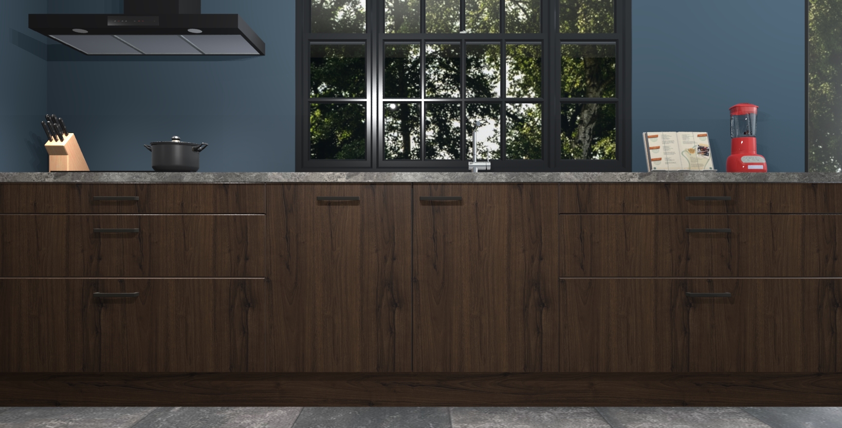 De softclose deuren openen en sluiten is ook heel eenvoudig - geniet van een moeiteloze keukenervaring, zelfs als er kinderen rondlopen. Voor extra gemak bij het plaatsen van uw bestelling bieden we ook een upgrade naar een kookplaat met geïntegreerde afzuiging.