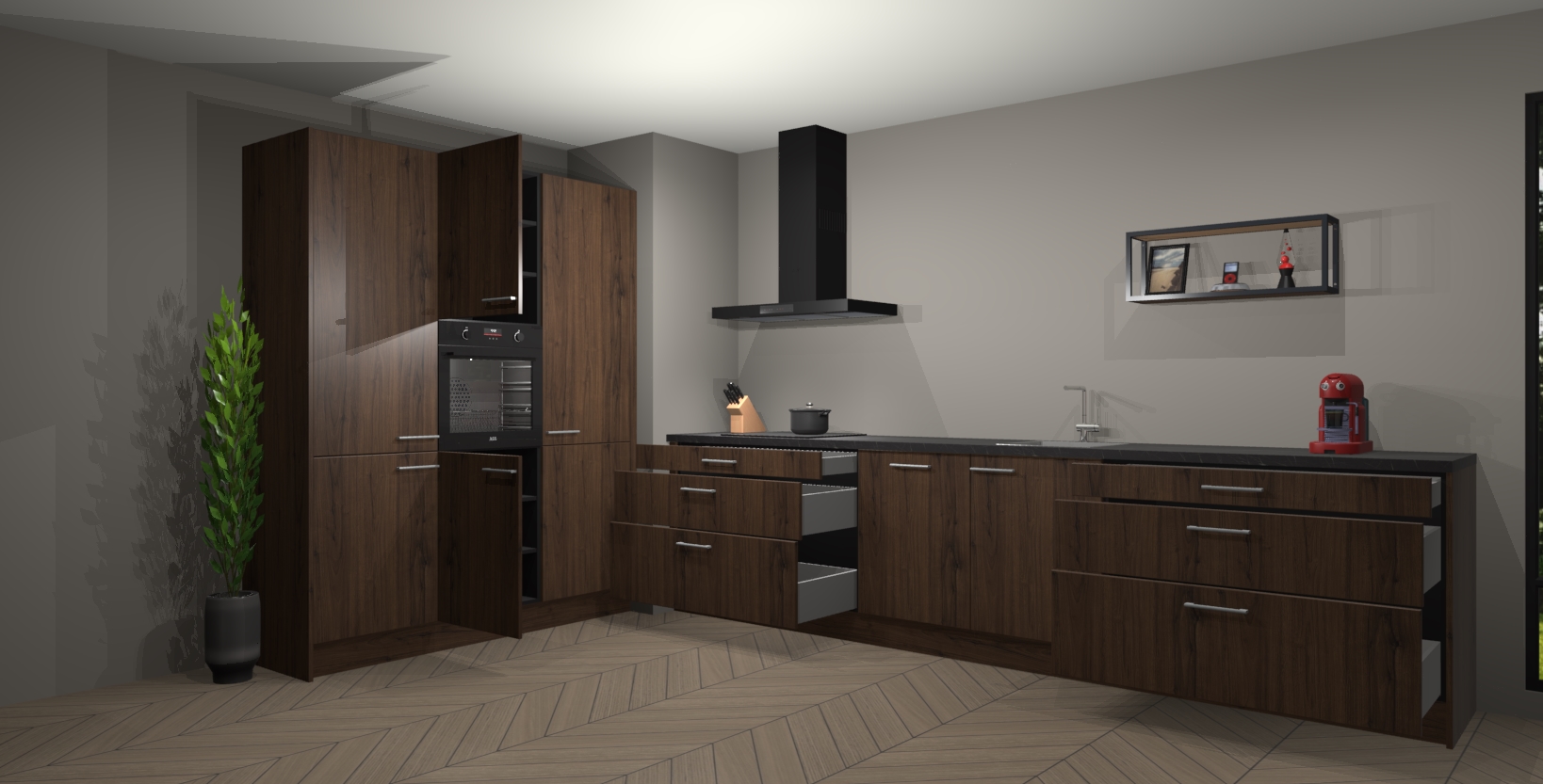 De Noten keuken Marseille, een mooie en verbluffende toevoeging aan uw keuken, is een kunstwerk met zijn luxe design en unieke combinatie van Noten met een houten blad. Geniet van eersteklas vakmanschap dat zorgt voor jarenlange betrouwbaarheid in een strak Europees hedendaags ontwerp.