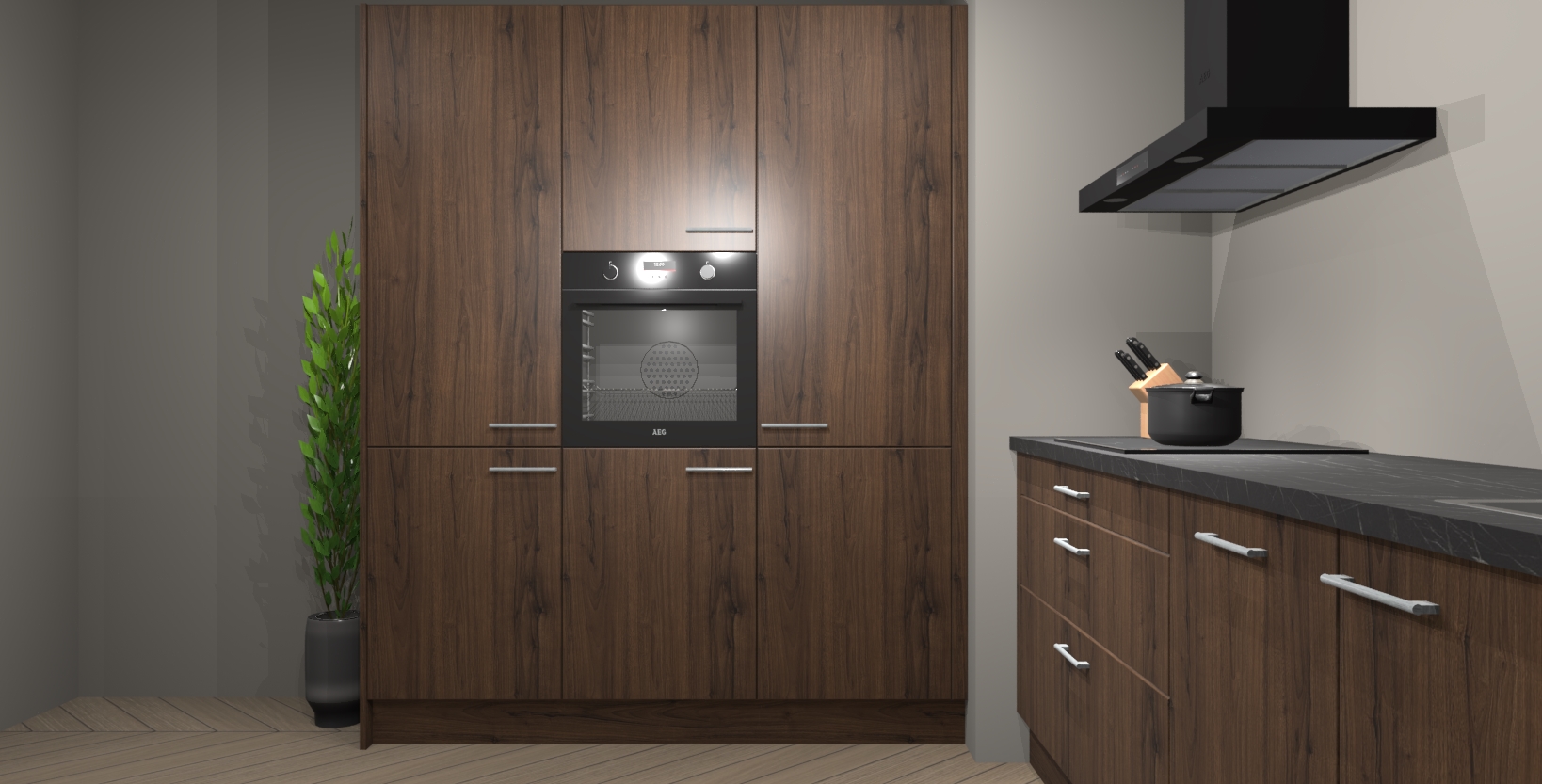De softclose deuren openen en sluiten is ook heel eenvoudig - geniet van een moeiteloze keukenervaring, zelfs als er kinderen rondlopen. Voor extra gemak bij het plaatsen van uw bestelling bieden we ook een upgrade naar een kookplaat met geïntegreerde afzuiging.