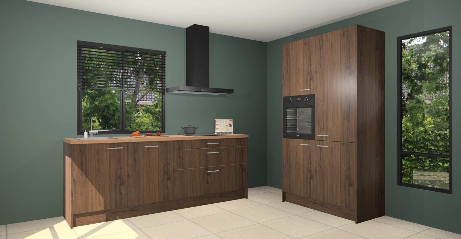 De setting is compleet gemaakt door de vijf inbouwapparaten: wanneer u gaat bestellen kunt u upgraden naar AEG-apparaten als oven, inductieplaat, afzuigkap, vaatwasser en koelkast. Kiest u voor onze Noten keuken Monaco, dan weet u zeker dat u te maken heeft met Duitse kwaliteit. Bovendien is er altijd sprake van een lage prijs en profiteren we aantrekkelijk leveringstermijn: die bedraagt slechts 7 weken ! Om het extra makkelijk te maken worden de keukenkasten reeds voorgemonteerd geleverd.