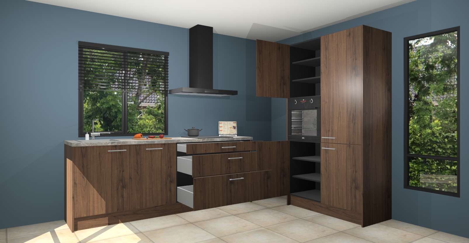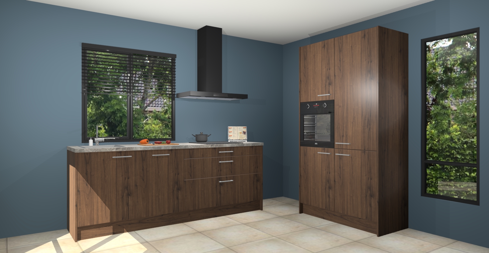 De setting is compleet gemaakt door de vijf inbouwapparaten: wanneer u gaat bestellen kunt u upgraden naar AEG-apparaten als oven, inductieplaat, afzuigkap, vaatwasser en koelkast. Kiest u voor onze Noten keuken Monaco, dan weet u zeker dat u te maken heeft met Duitse kwaliteit. Bovendien is er altijd sprake van een lage prijs en profiteren we aantrekkelijk leveringstermijn: die bedraagt slechts 7 weken ! Om het extra makkelijk te maken worden de keukenkasten reeds voorgemonteerd geleverd.