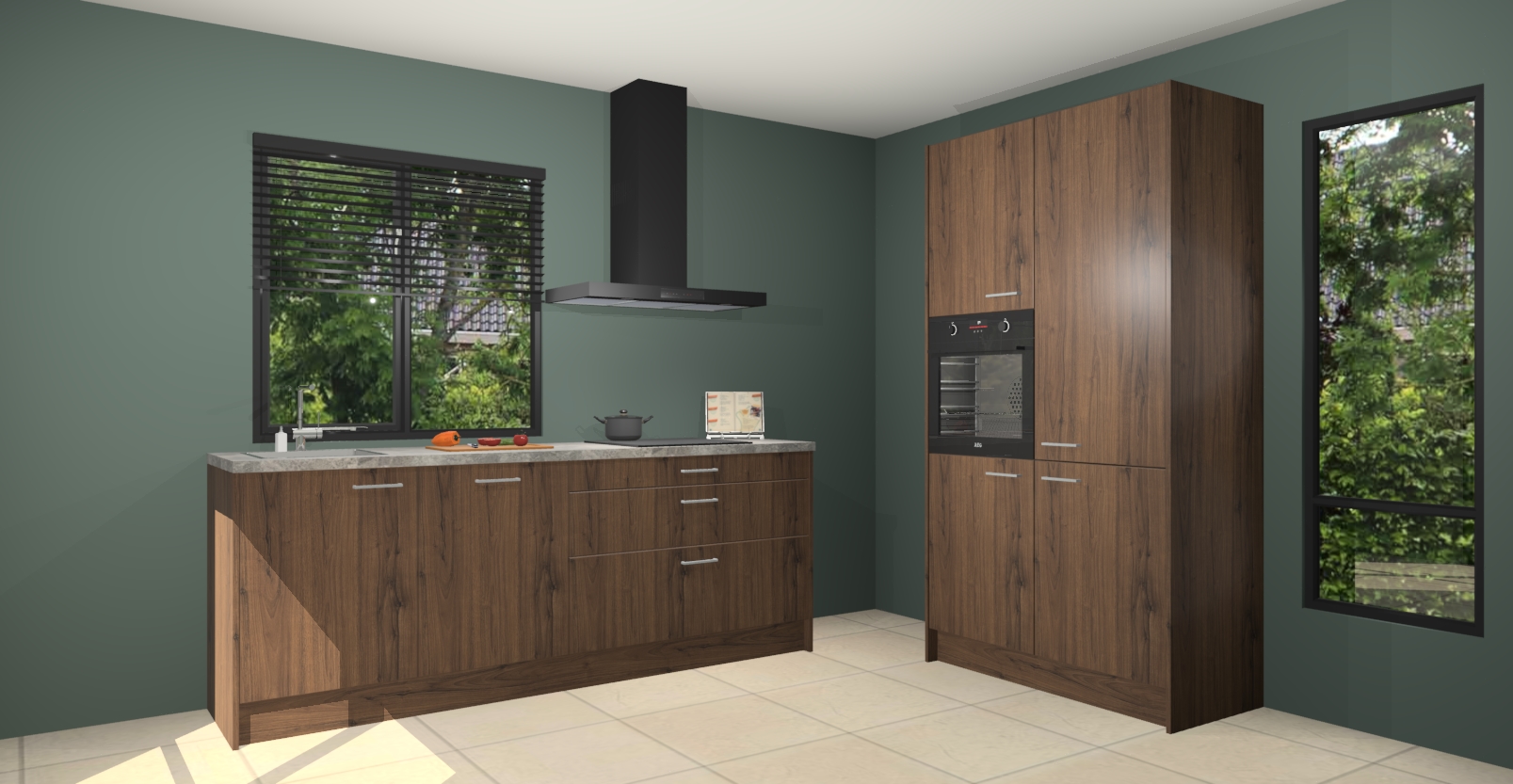 De setting is compleet gemaakt door de vijf inbouwapparaten: wanneer u gaat bestellen kunt u upgraden naar AEG-apparaten als oven, inductieplaat, afzuigkap, vaatwasser en koelkast. Kiest u voor onze Noten keuken Monaco, dan weet u zeker dat u te maken heeft met Duitse kwaliteit. Bovendien is er altijd sprake van een lage prijs en profiteren we aantrekkelijk leveringstermijn: die bedraagt slechts 7 weken ! Om het extra makkelijk te maken worden de keukenkasten reeds voorgemonteerd geleverd.