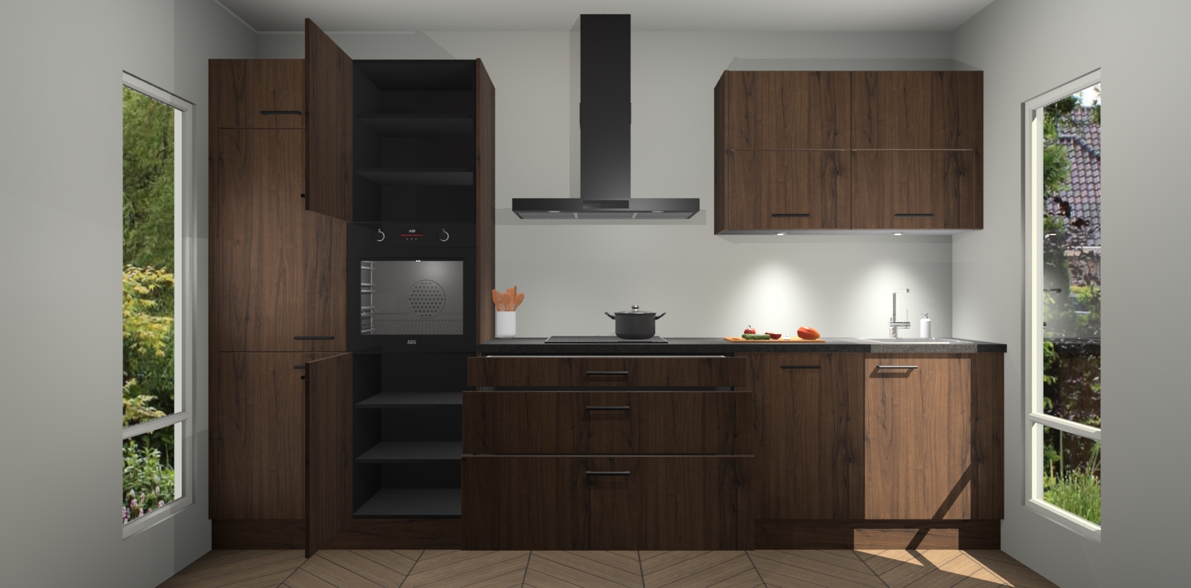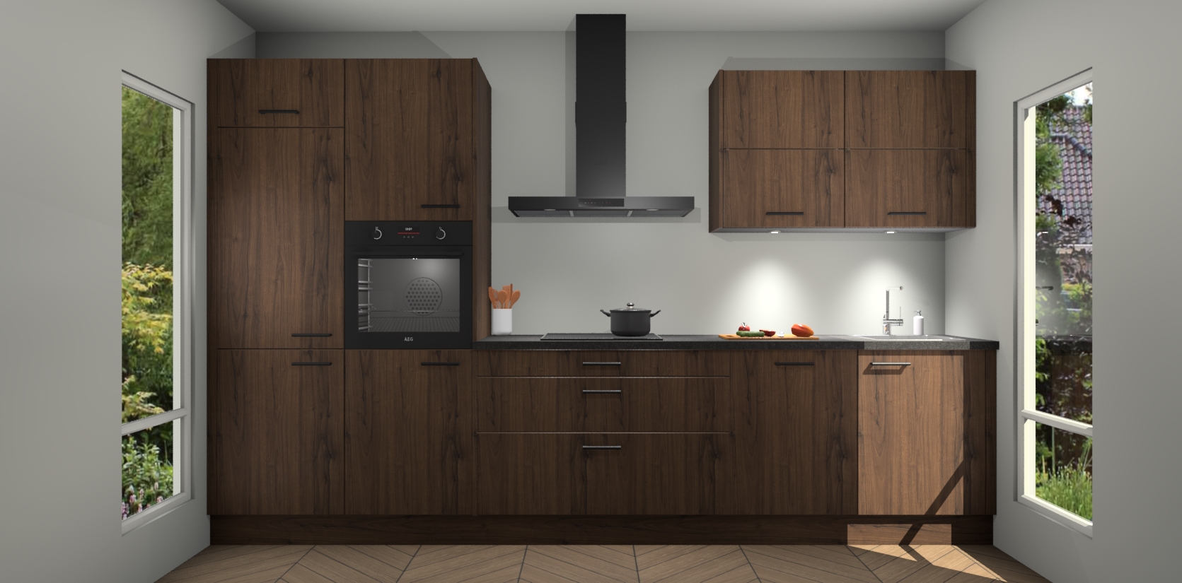 Maak kennis met de nieuwe Noten Keuken Parijs - de perfecte designcombinatie van gemak, moderne elegantie en ultramodern design. Met een gemakkelijk te reinigen Noten afwerking, zal de slankheid van deze keuken zeker een vleugje luxe toevoegen aan elke ruimte die hij inneemt.