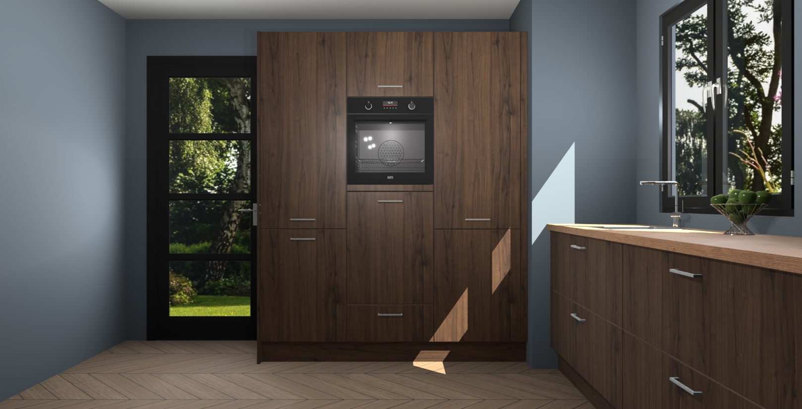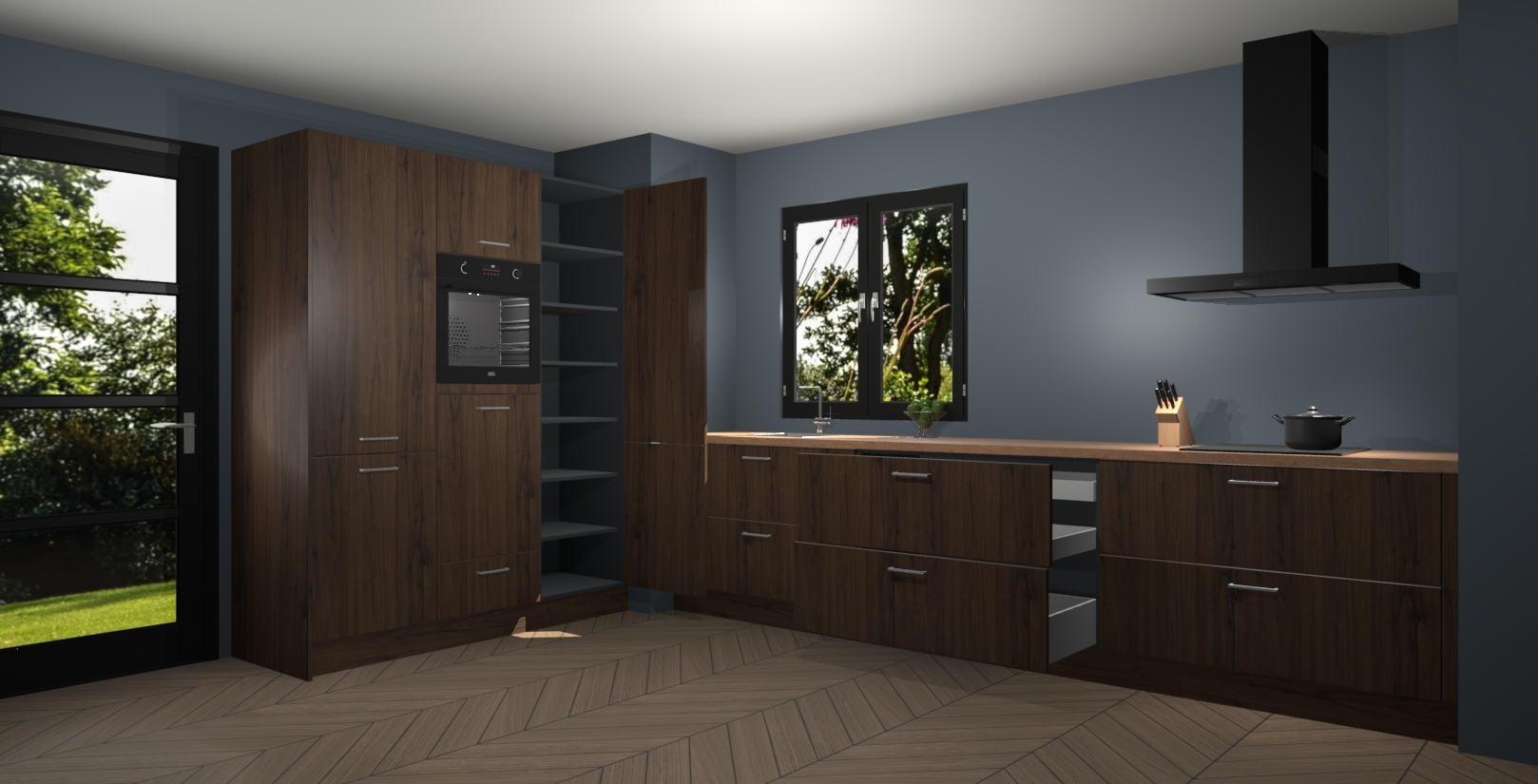 De softclose deuren openen en sluiten is ook heel eenvoudig - geniet van een moeiteloze keukenervaring, zelfs als er kinderen rondlopen. Voor extra gemak bij het plaatsen van uw bestelling bieden we ook een upgrade naar een kookplaat met geïntegreerde afzuiging.