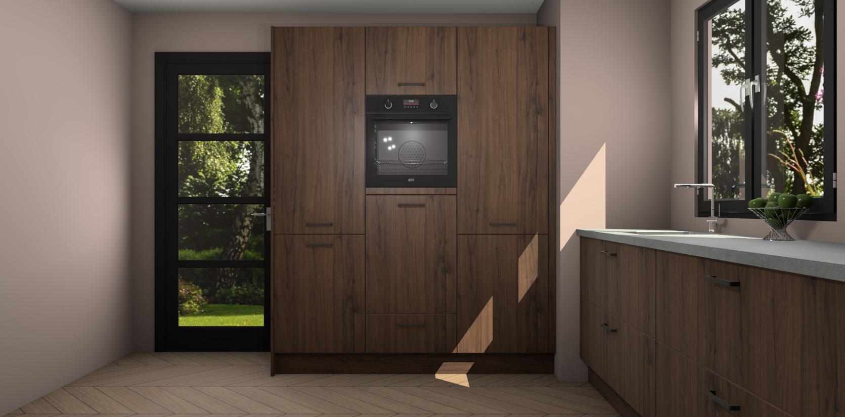 De softclose deuren openen en sluiten is ook heel eenvoudig - geniet van een moeiteloze keukenervaring, zelfs als er kinderen rondlopen. Voor extra gemak bij het plaatsen van uw bestelling bieden we ook een upgrade naar een kookplaat met geïntegreerde afzuiging.