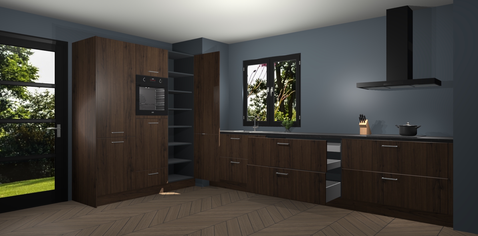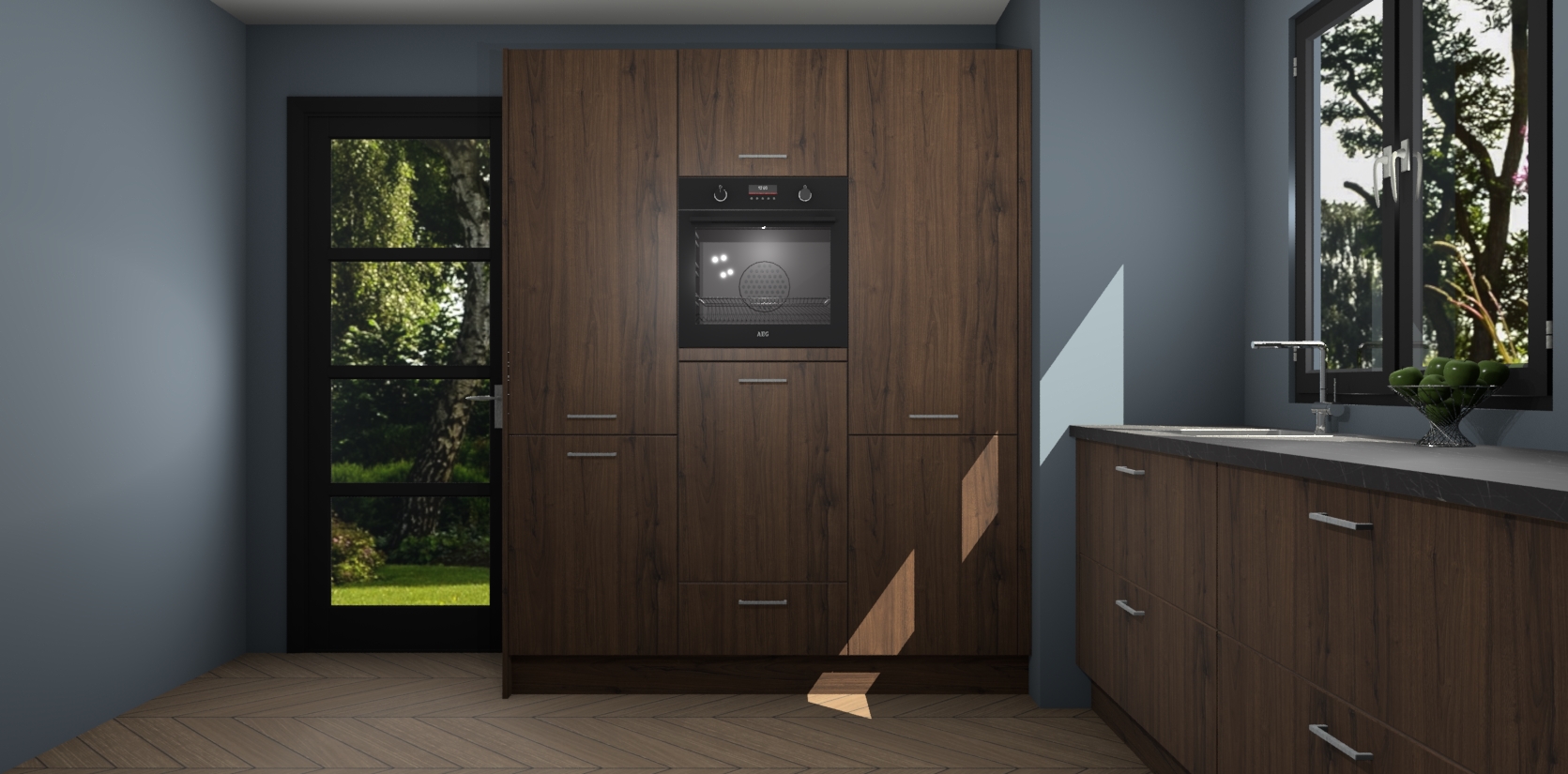 De softclose deuren openen en sluiten is ook heel eenvoudig - geniet van een moeiteloze keukenervaring, zelfs als er kinderen rondlopen. Voor extra gemak bij het plaatsen van uw bestelling bieden we ook een upgrade naar een kookplaat met geïntegreerde afzuiging.
