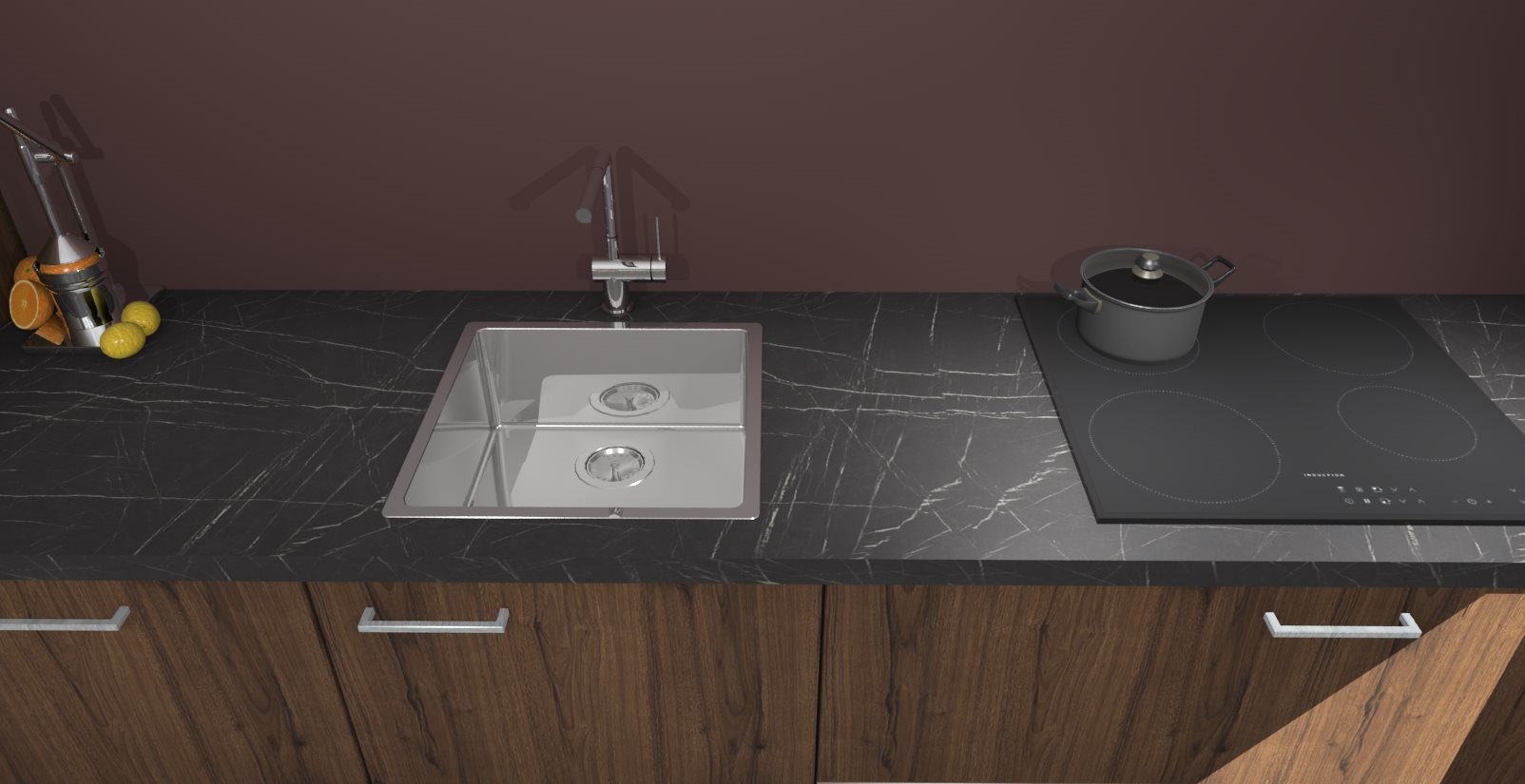 - Uitsparing van kookplaat, spoelbak en kraan dient u zelf te verzorgen.