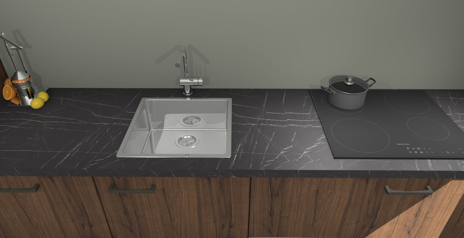 • Uitsparing van kookplaat, spoelbak en kraan dient u zelf te verzorgen.