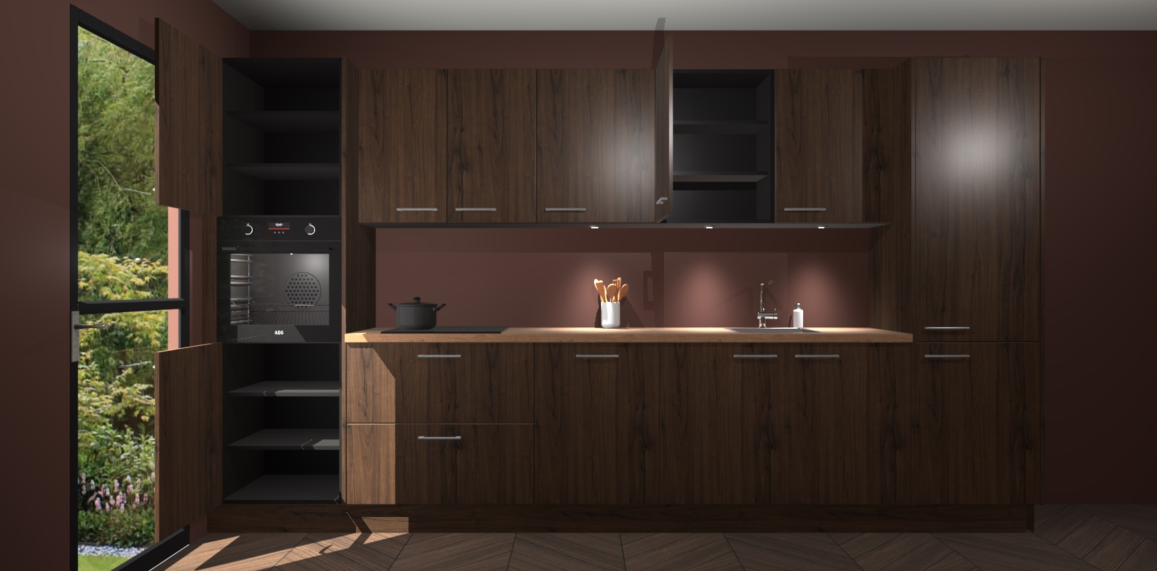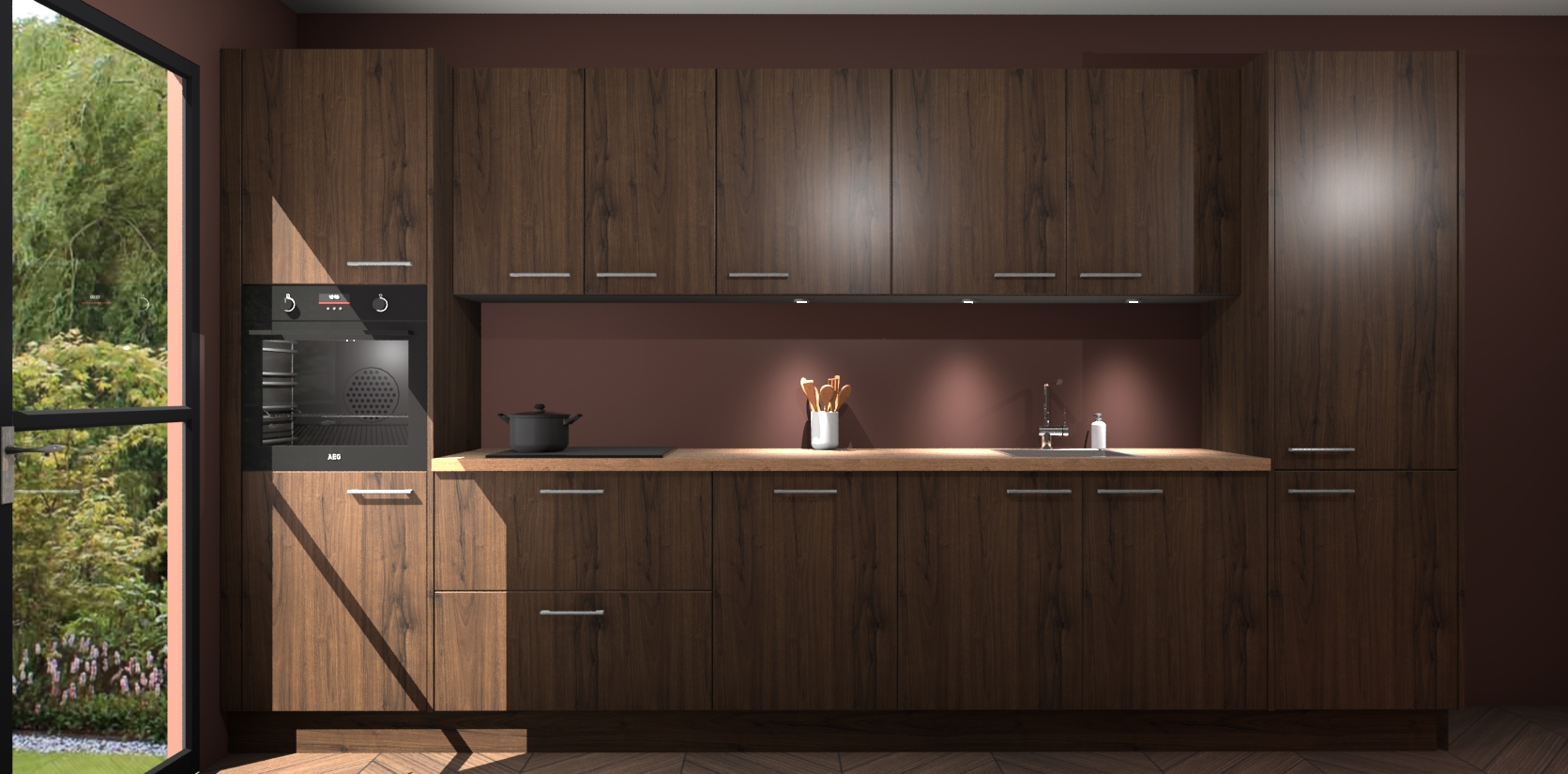 Dit is de perfecte keuken voor wie op zoek is naar een luxueuze stijl zonder zijn portemonnee te legen! Het chique ontwerp van de noten keuken Wels voegt dat vleugje verfijning toe aan elk huis. Het gemak van voorgemonteerde kasten bespaart u talloze uren tijd en energie, zodat u veel sneller dan verwacht kunt beginnen te genieten van uw prachtige nieuwe keuken. Bovendien bedraagt de levertijd slechts 7 weken.