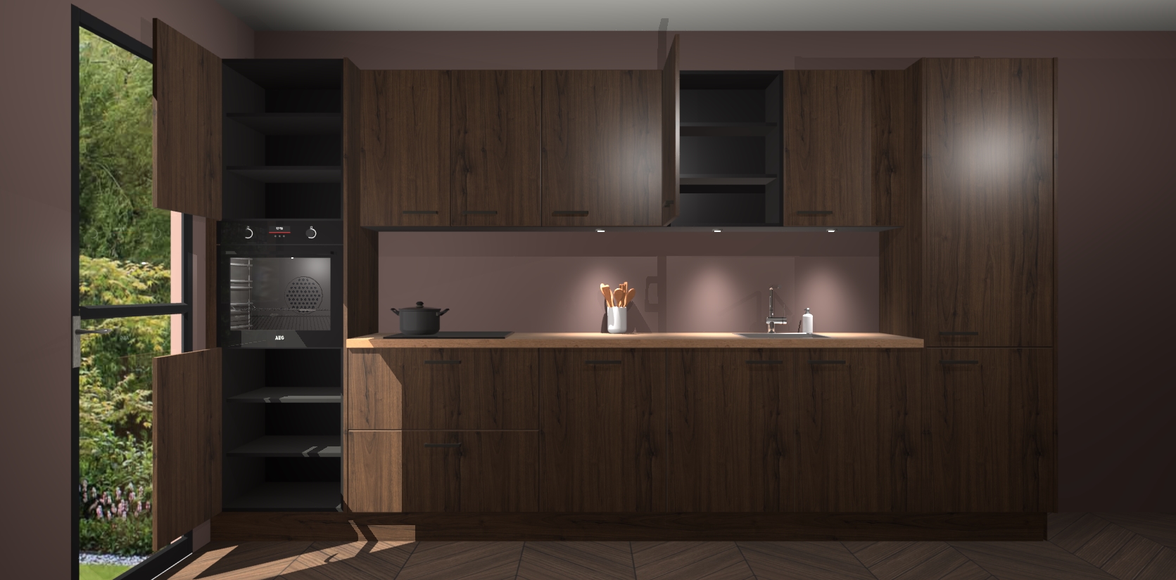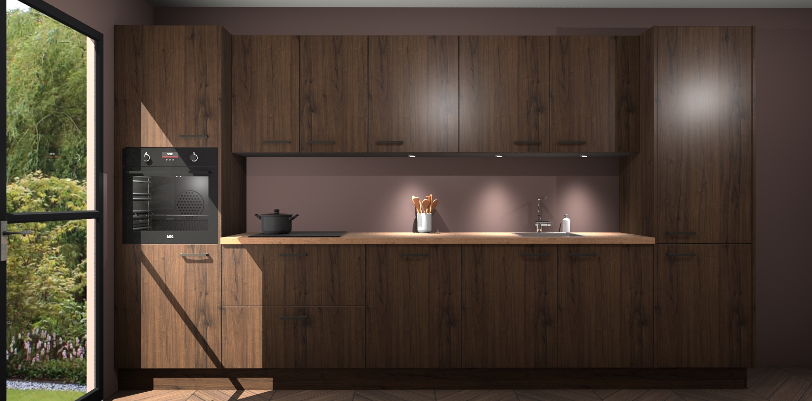 Dit is de perfecte keuken voor wie op zoek is naar een luxueuze stijl zonder zijn portemonnee te legen! Het chique ontwerp van de noten keuken Wels voegt dat vleugje verfijning toe aan elk huis. Het gemak van voorgemonteerde kasten bespaart u talloze uren tijd en energie, zodat u veel sneller dan verwacht kunt beginnen te genieten van uw prachtige nieuwe keuken. Bovendien bedraagt de levertijd slechts 7 weken.