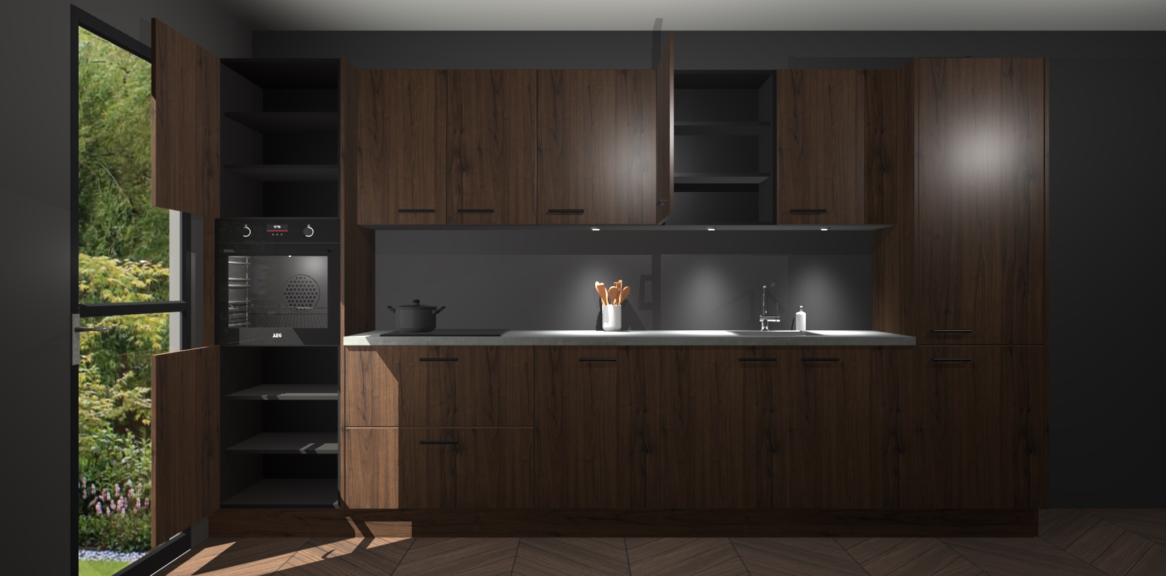 Dit is de perfecte keuken voor wie op zoek is naar een luxueuze stijl zonder zijn portemonnee te legen! Het chique ontwerp van de noten keuken Wels voegt dat vleugje verfijning toe aan elk huis. Het gemak van voorgemonteerde kasten bespaart u talloze uren tijd en energie, zodat u veel sneller dan verwacht kunt beginnen te genieten van uw prachtige nieuwe keuken. Bovendien bedraagt de levertijd slechts 7 weken.