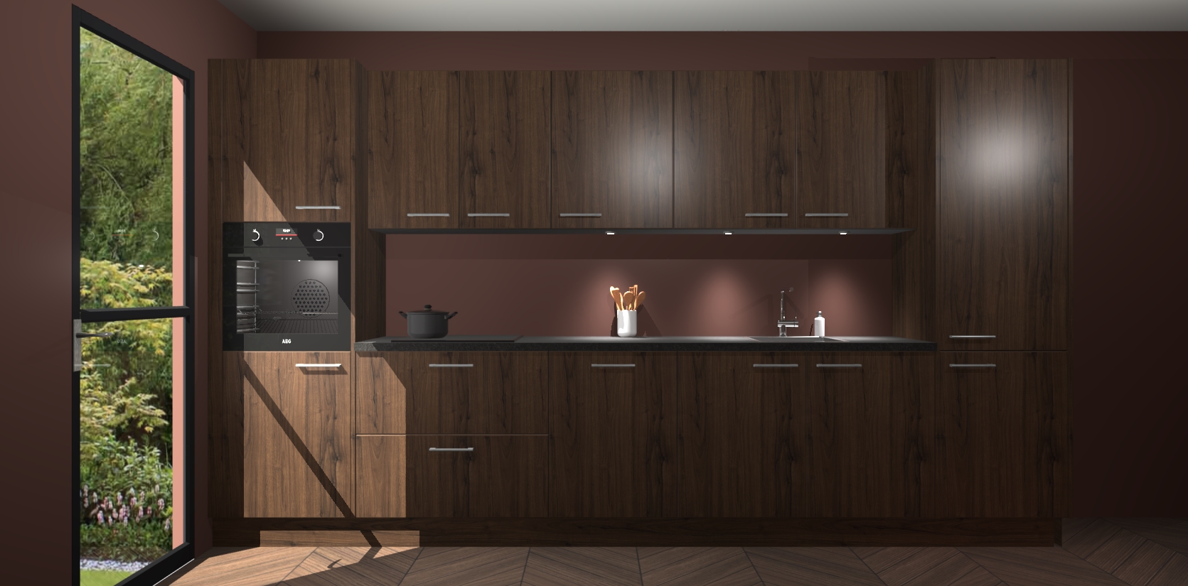 Dit is de perfecte keuken voor wie op zoek is naar een luxueuze stijl zonder zijn portemonnee te legen! Het chique ontwerp van de noten keuken Wels voegt dat vleugje verfijning toe aan elk huis. Het gemak van voorgemonteerde kasten bespaart u talloze uren tijd en energie, zodat u veel sneller dan verwacht kunt beginnen te genieten van uw prachtige nieuwe keuken. Bovendien bedraagt de levertijd slechts 7 weken.
