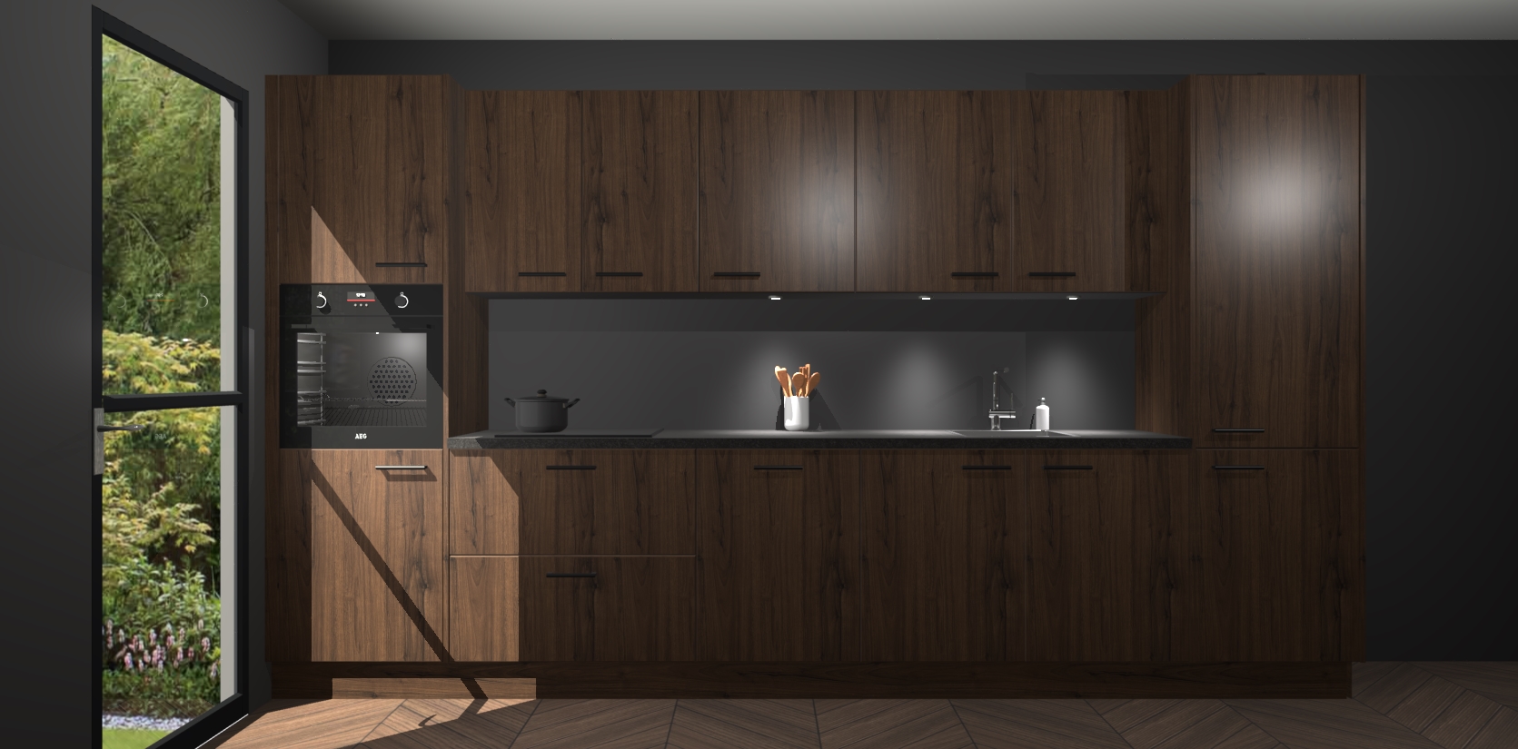 Dit is de perfecte keuken voor wie op zoek is naar een luxueuze stijl zonder zijn portemonnee te legen! Het chique ontwerp van de noten keuken Wels voegt dat vleugje verfijning toe aan elk huis. Het gemak van voorgemonteerde kasten bespaart u talloze uren tijd en energie, zodat u veel sneller dan verwacht kunt beginnen te genieten van uw prachtige nieuwe keuken. Bovendien bedraagt de levertijd slechts 7 weken.