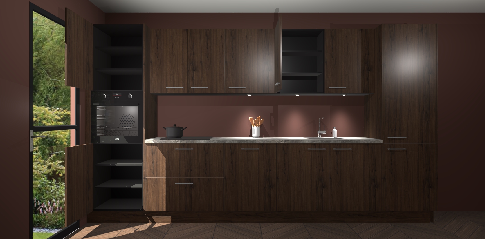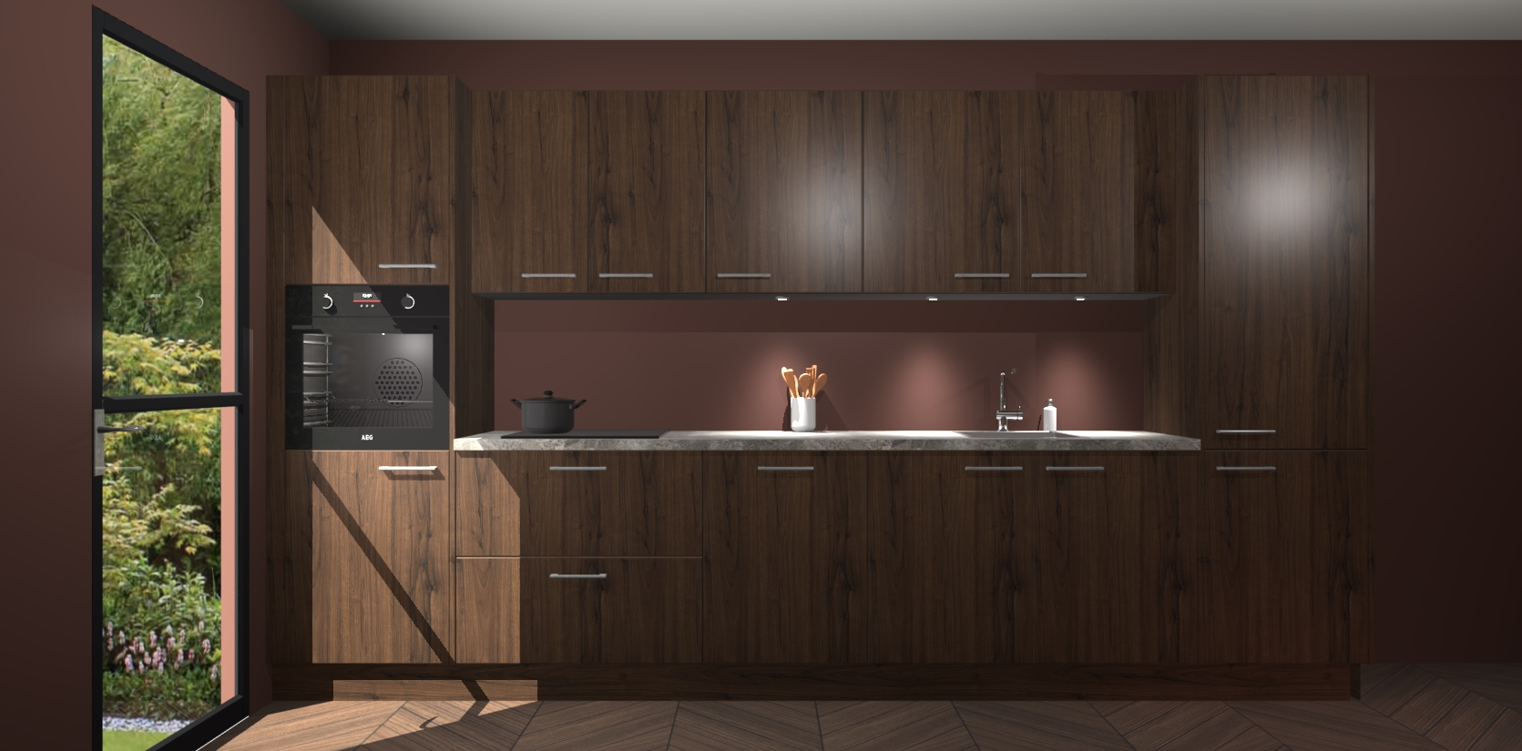 Dit is de perfecte keuken voor wie op zoek is naar een luxueuze stijl zonder zijn portemonnee te legen! Het chique ontwerp van de noten keuken Wels voegt dat vleugje verfijning toe aan elk huis. Het gemak van voorgemonteerde kasten bespaart u talloze uren tijd en energie, zodat u veel sneller dan verwacht kunt beginnen te genieten van uw prachtige nieuwe keuken. Bovendien bedraagt de levertijd slechts 7 weken.