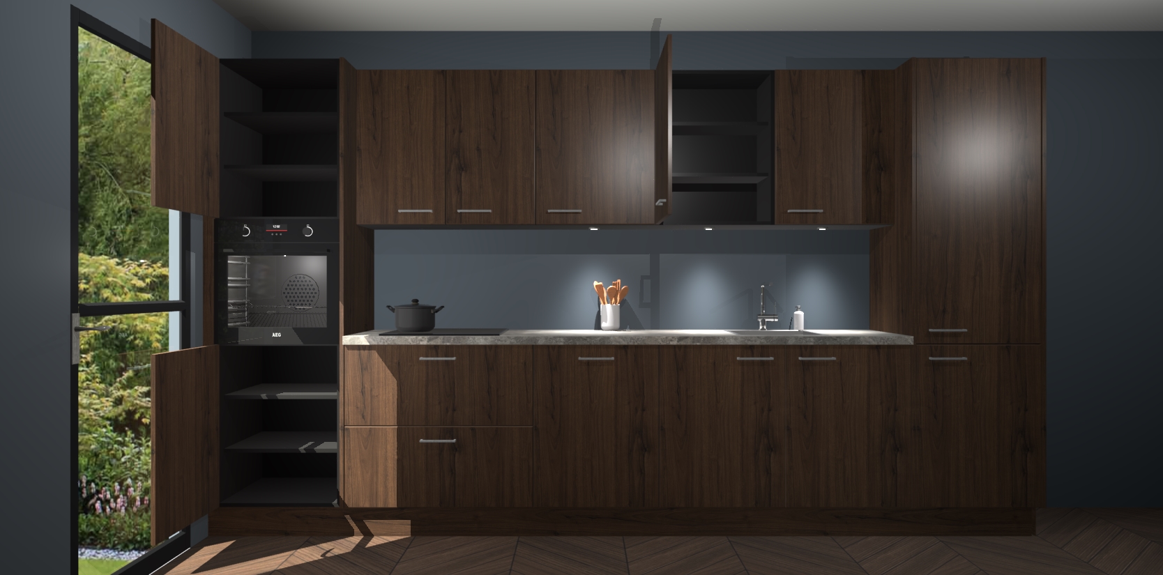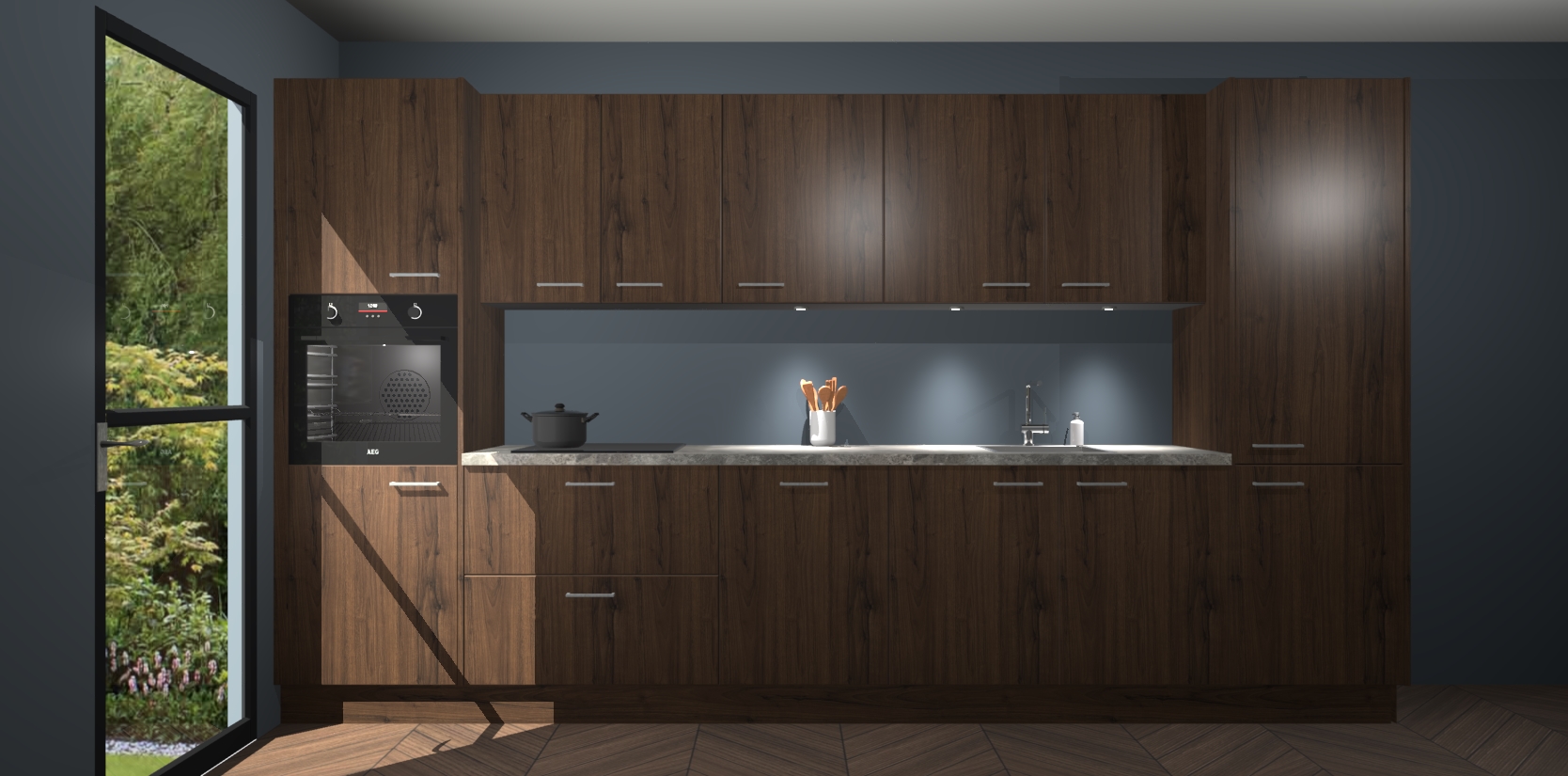 Dit is de perfecte keuken voor wie op zoek is naar een luxueuze stijl zonder zijn portemonnee te legen! Het chique ontwerp van de noten keuken Wels voegt dat vleugje verfijning toe aan elk huis. Het gemak van voorgemonteerde kasten bespaart u talloze uren tijd en energie, zodat u veel sneller dan verwacht kunt beginnen te genieten van uw prachtige nieuwe keuken. Bovendien bedraagt de levertijd slechts 7 weken.