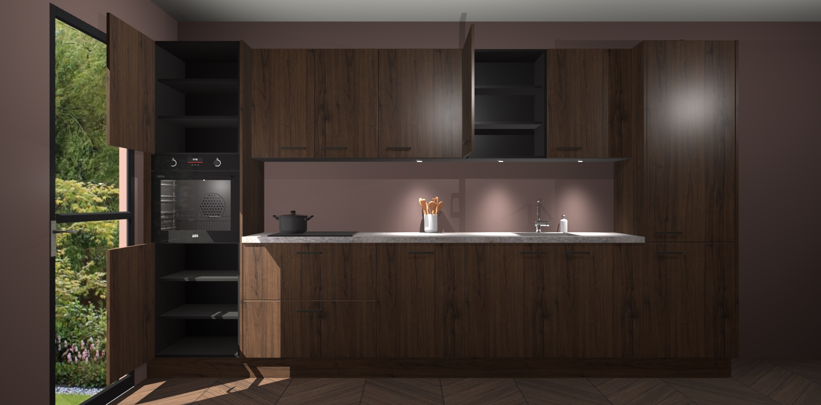 Dit is de perfecte keuken voor wie op zoek is naar een luxueuze stijl zonder zijn portemonnee te legen! Het chique ontwerp van de noten keuken Wels voegt dat vleugje verfijning toe aan elk huis. Het gemak van voorgemonteerde kasten bespaart u talloze uren tijd en energie, zodat u veel sneller dan verwacht kunt beginnen te genieten van uw prachtige nieuwe keuken. Bovendien bedraagt de levertijd slechts 7 weken.