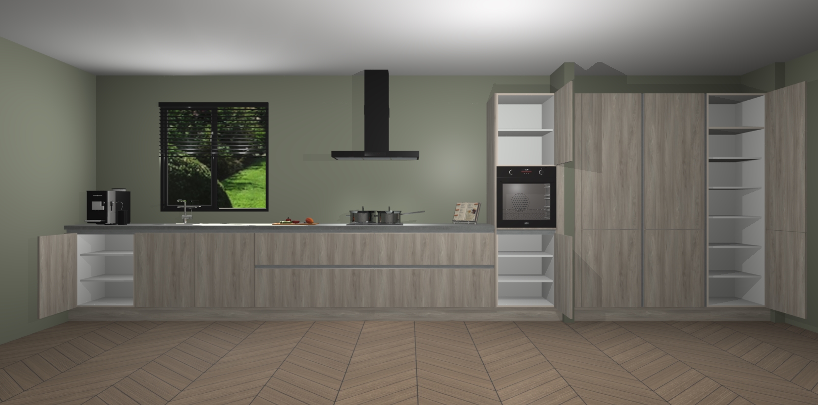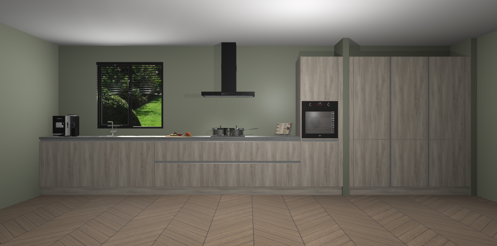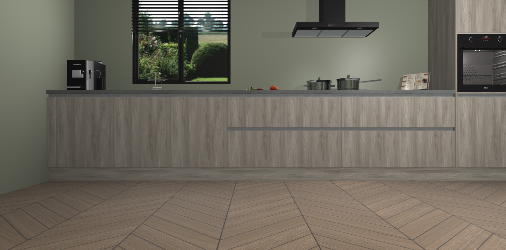 Een stijlvolle en praktische keuken als deze mag gezien worden. Dankzij de prachtige matte afwerking wordt de keuken gemakkelijk het middelpunt van uw huis - hij ziet er geweldig uit onder allerlei lichtomstandigheden, van dag tot nacht!