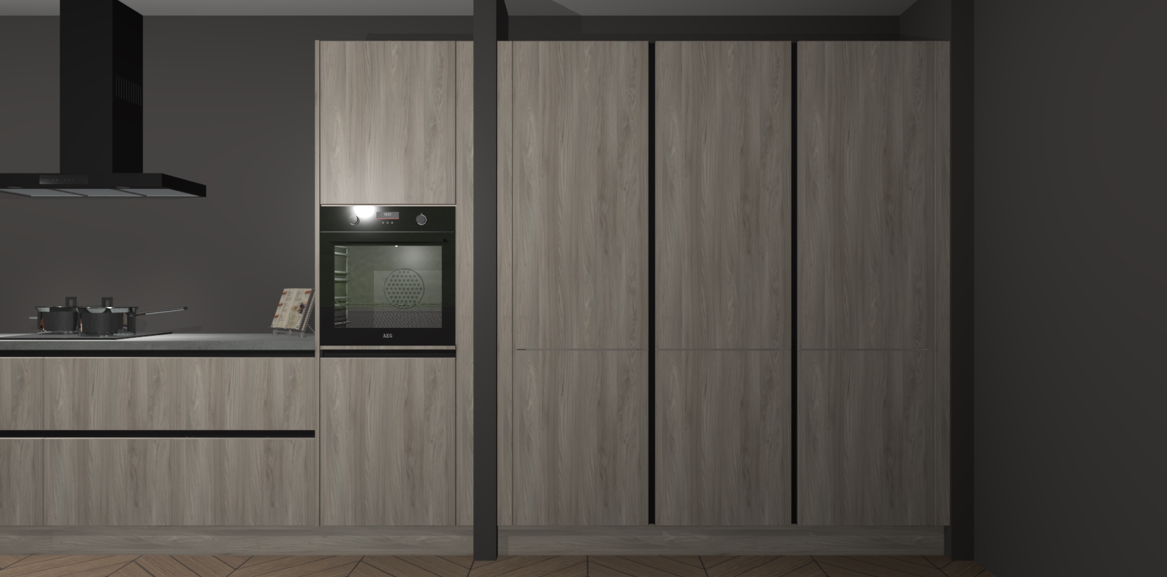 Een stijlvolle en praktische keuken als deze mag gezien worden. Dankzij de prachtige matte afwerking wordt de keuken gemakkelijk het middelpunt van uw huis - hij ziet er geweldig uit onder allerlei lichtomstandigheden, van dag tot nacht!