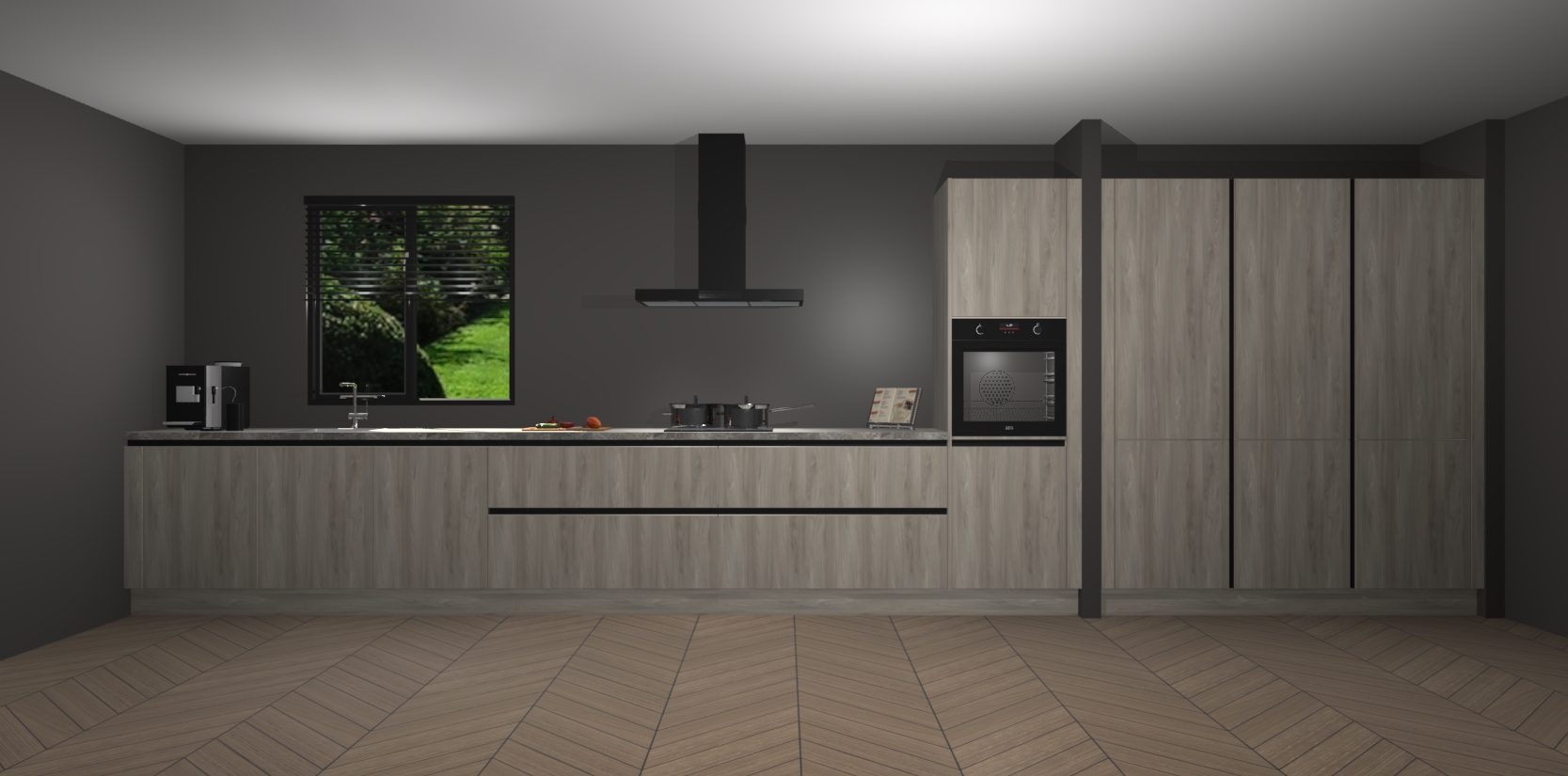Een stijlvolle en praktische keuken als deze mag gezien worden. Dankzij de prachtige matte afwerking wordt de keuken gemakkelijk het middelpunt van uw huis - hij ziet er geweldig uit onder allerlei lichtomstandigheden, van dag tot nacht!