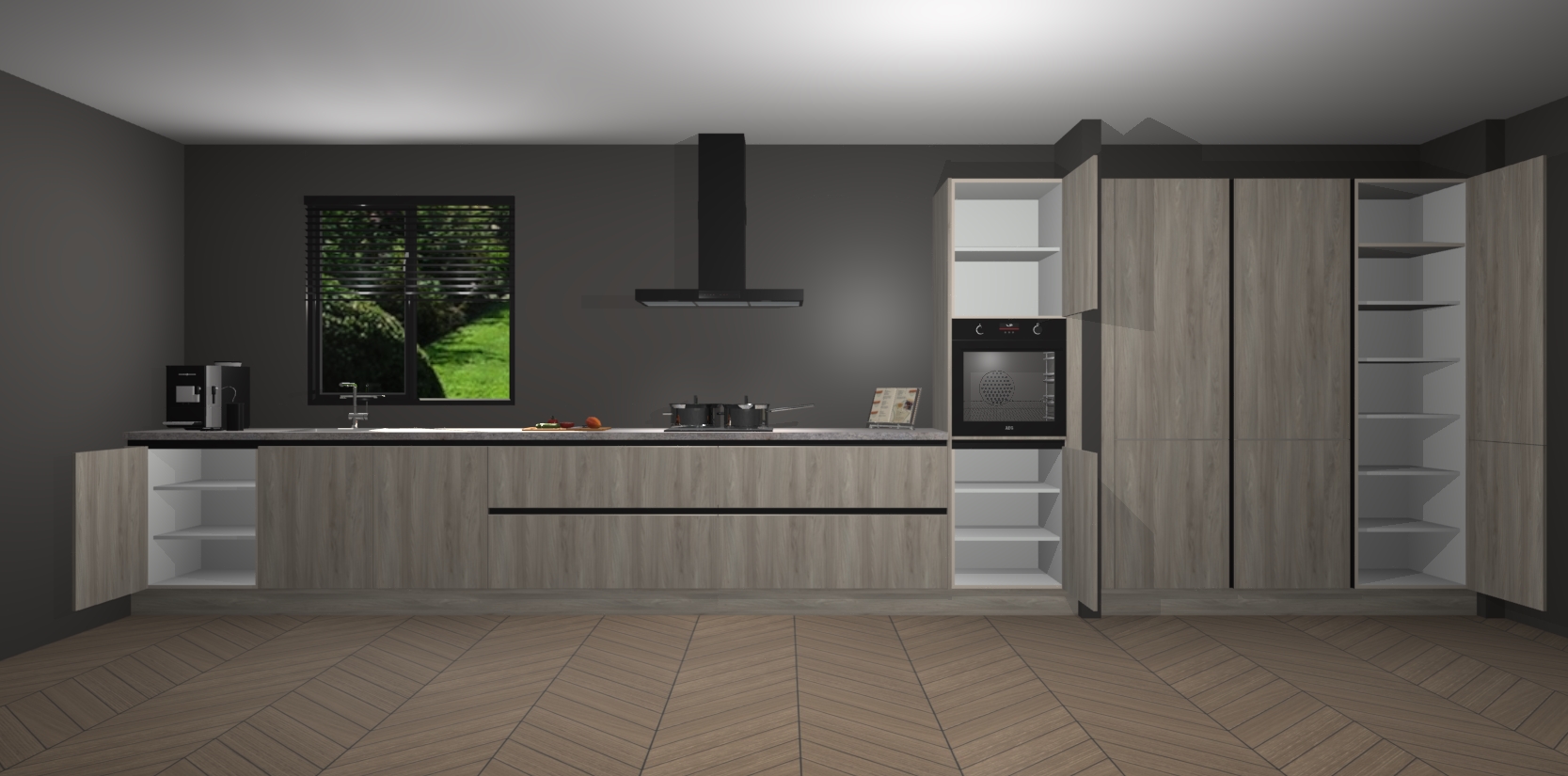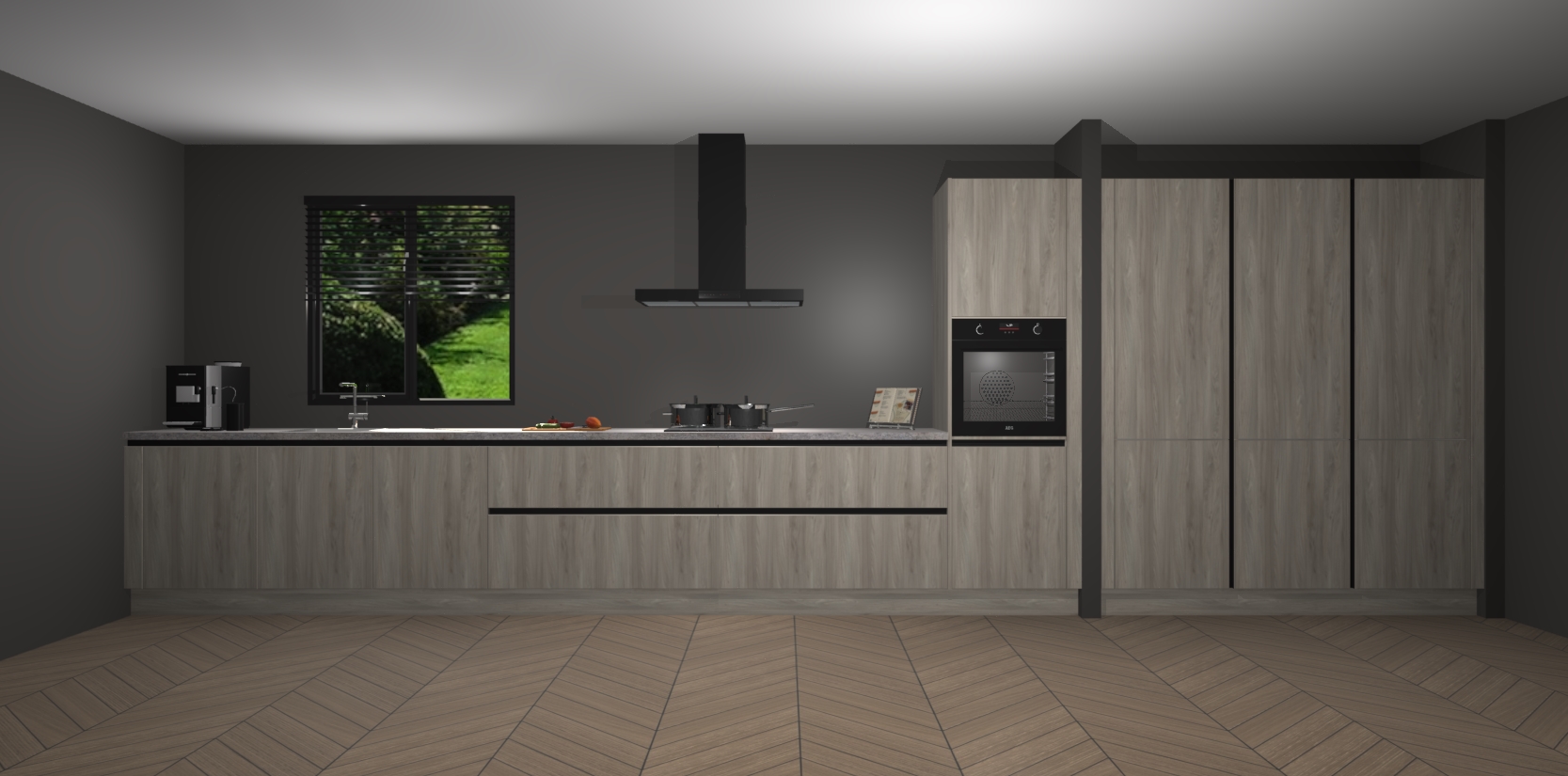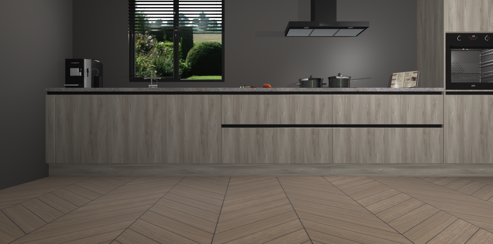 Een stijlvolle en praktische keuken als deze mag gezien worden. Dankzij de prachtige matte afwerking wordt de keuken gemakkelijk het middelpunt van uw huis - hij ziet er geweldig uit onder allerlei lichtomstandigheden, van dag tot nacht!
