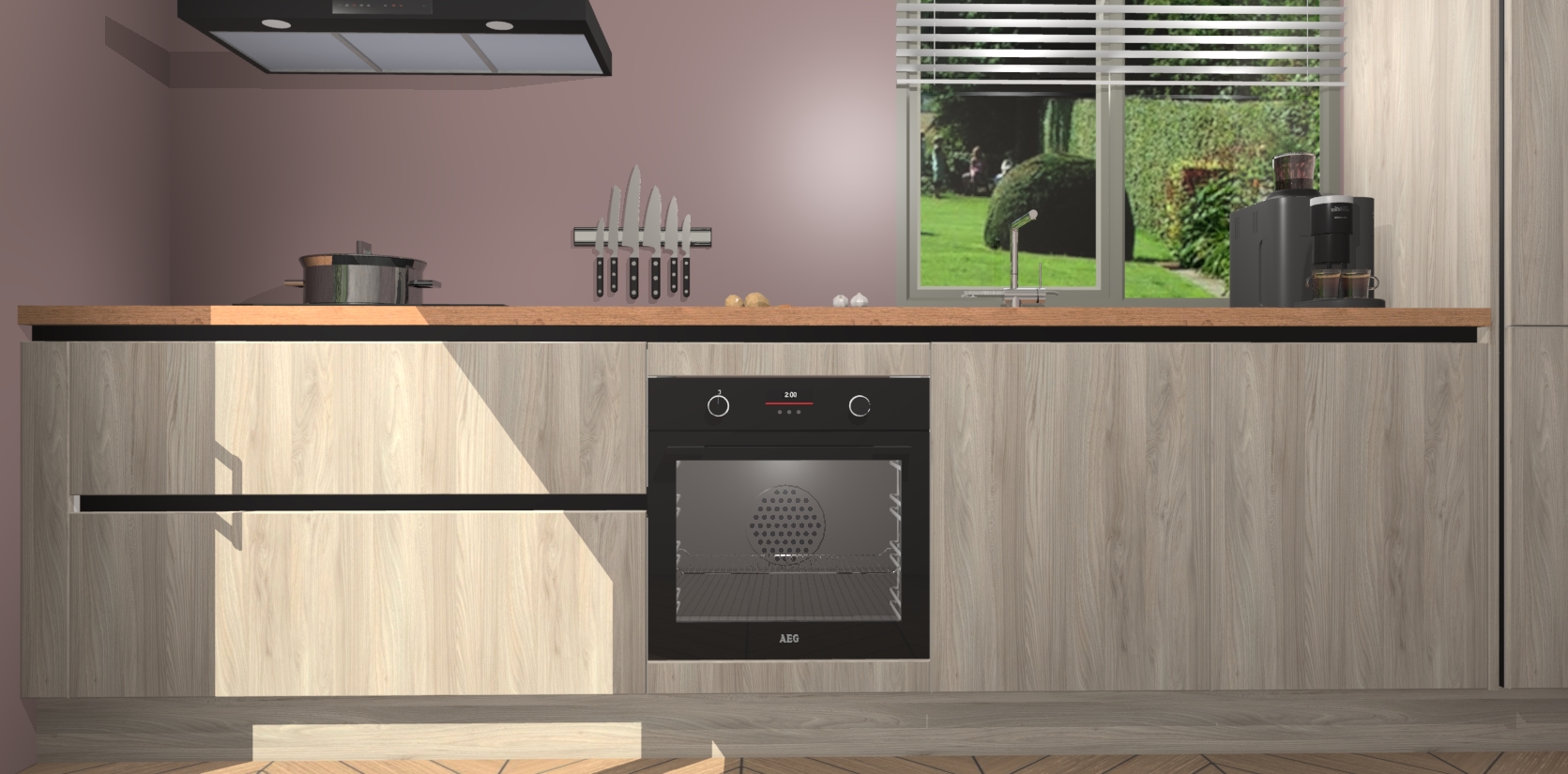 - Ombouw om de oven onder het werkblad te kunnen monteren