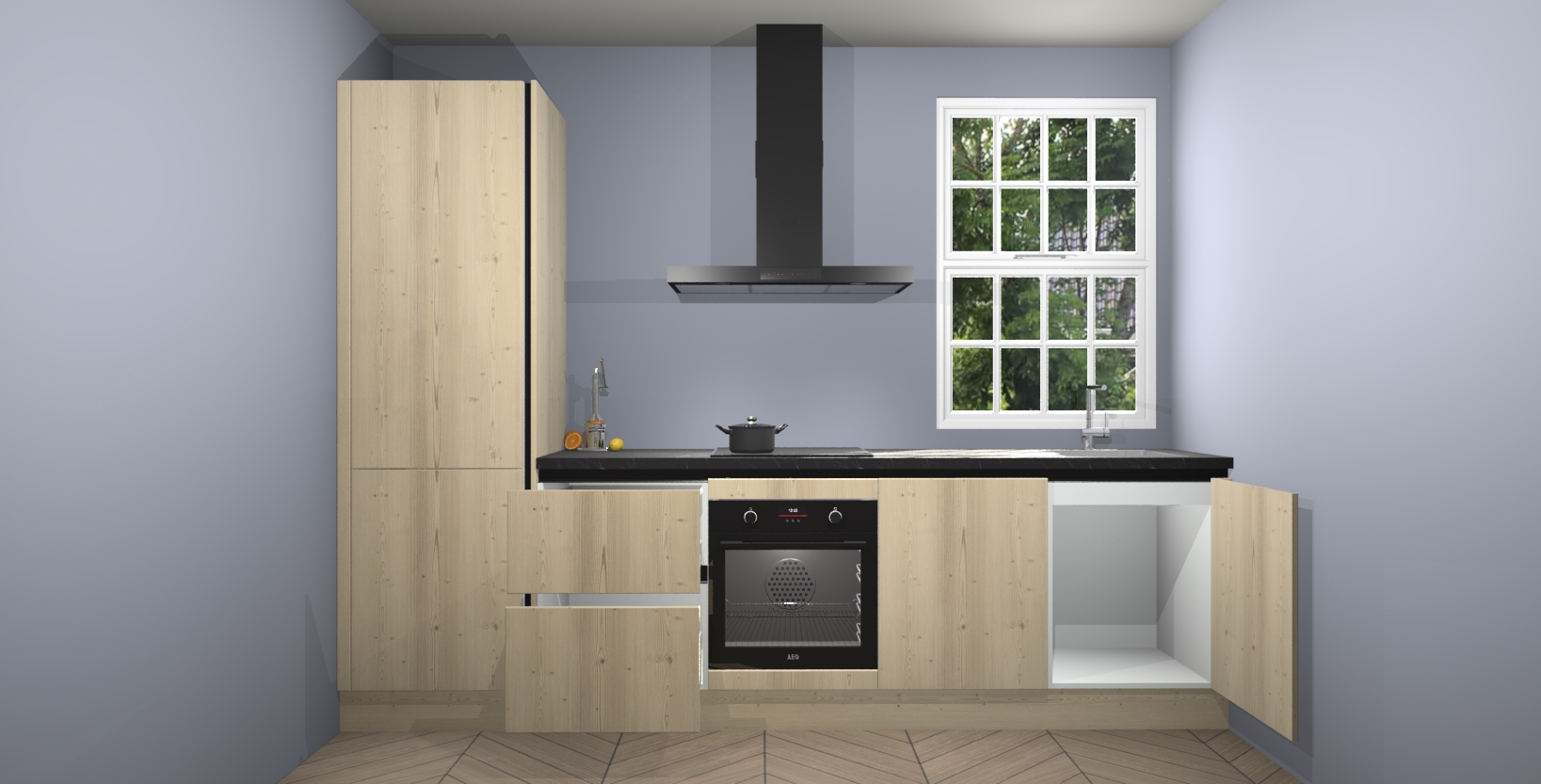 Inclusief plinten, stelpoten en werkblad
