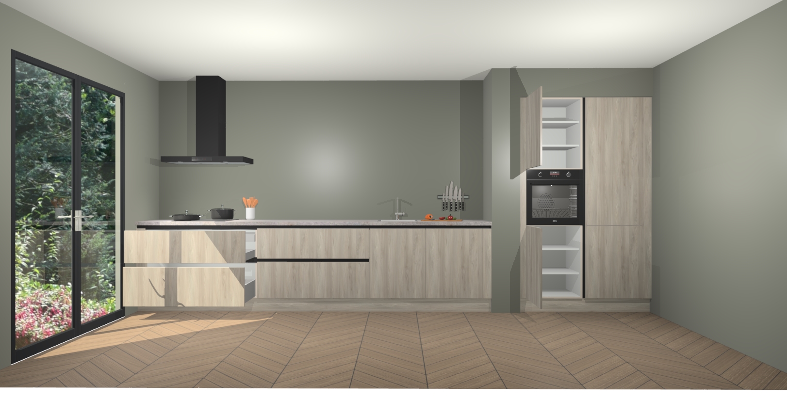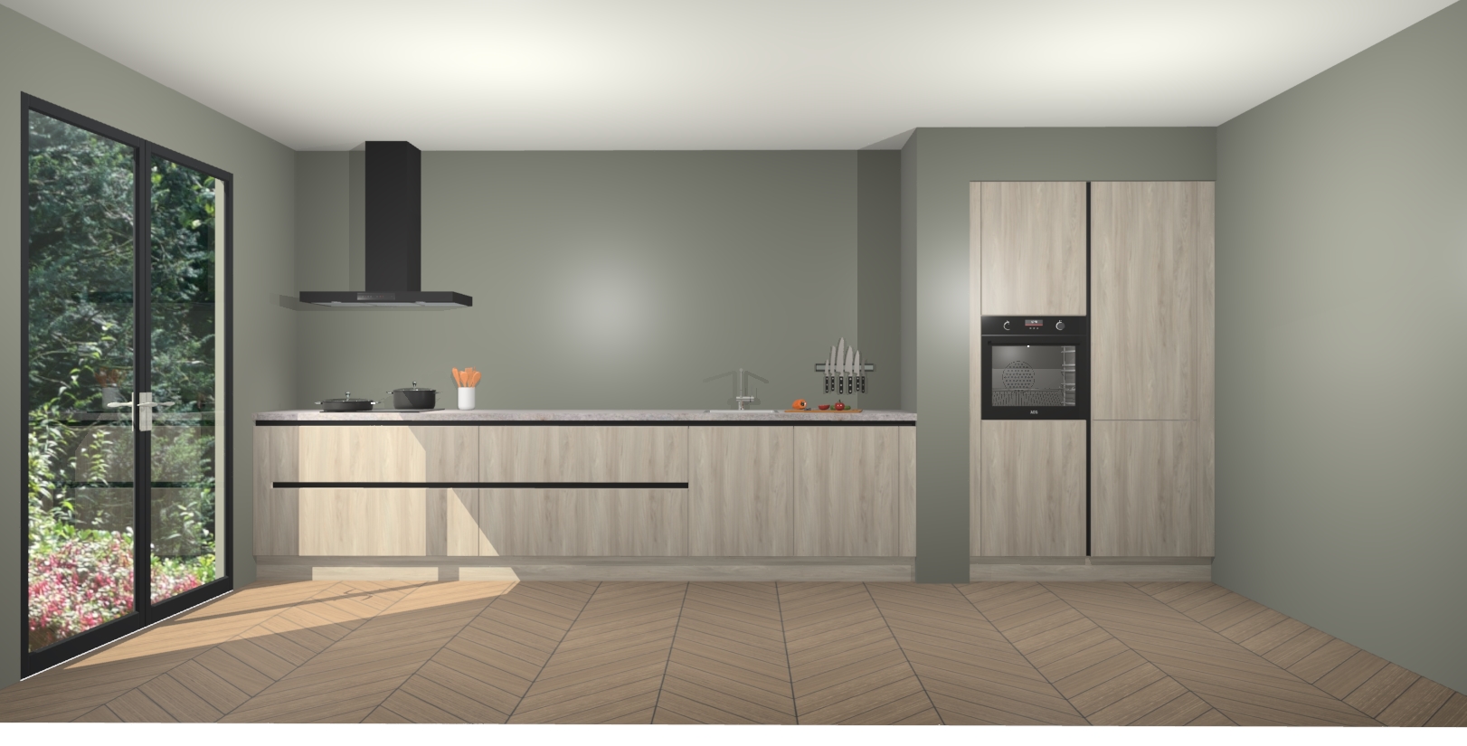 Met de Olm greeploze keuken Calgary Maakt u van uw keuken het pronkstuk van uw huis. Stijlvol en toch praktisch, de nieuwste look voor wie meer waarde en charme aan zijn huis wil toevoegen. Met prachtige handgrepen die zich lenen voor een klassieke stijlbron, zal u niet teleurgesteld zijn in het resultaat. De soft-close deurscharnieren geven een gevoel van luxe omdat ze zachtjes bewegen zonder storende of krakende geluiden te veroorzaken.
