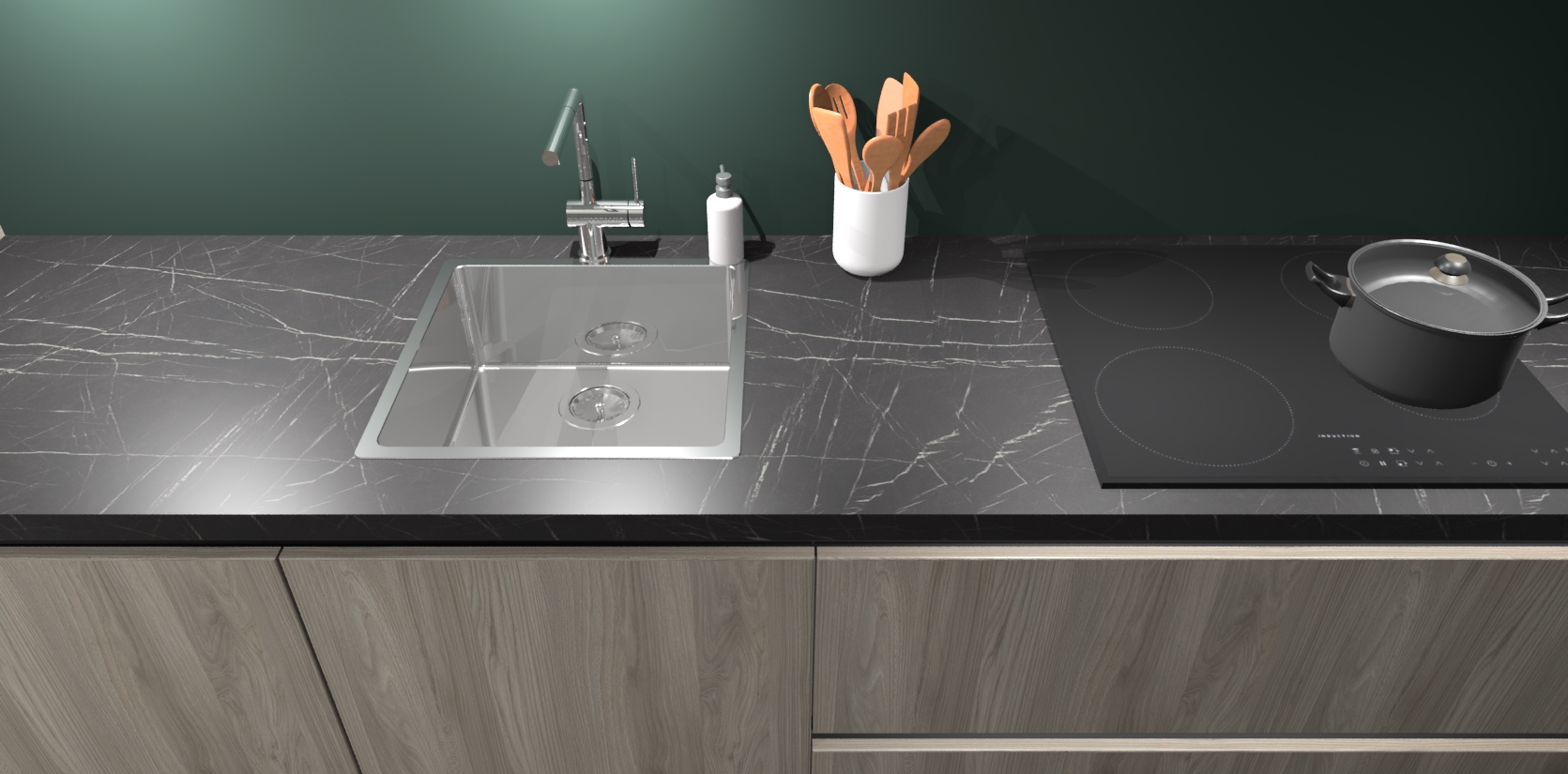 - Bij een hoekwerkblad zijn de hoeken in gevreesd en op maat gemaakt