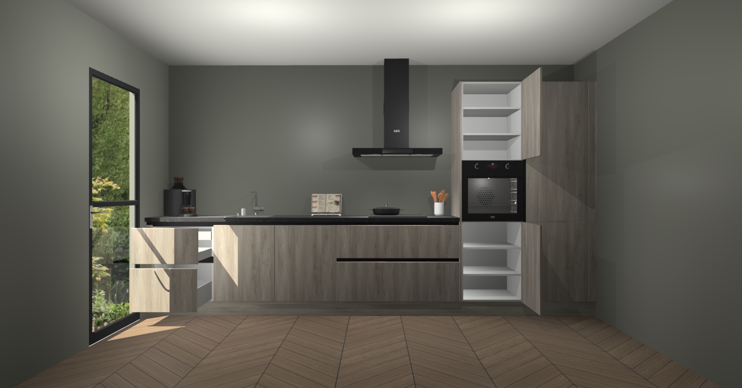 De Olm greeploze keuken Leuven is de perfecte mix van modern en tijdloos design. Met zijn prachtige glazen deuren op de bovenkastjes voegt hij echt iets speciaals en unieks toe aan elke keuken. En met vijf ingebouwde apparaten inbegrepen - een oven, inductiekookplaat, afzuigkap, vaatwasser en koelkast - kunt u deze keuken echt helemaal van uzelf maken! U kunt na bestelling ook upgraden naar AEG voor een nog hogere kwaliteitservaring.