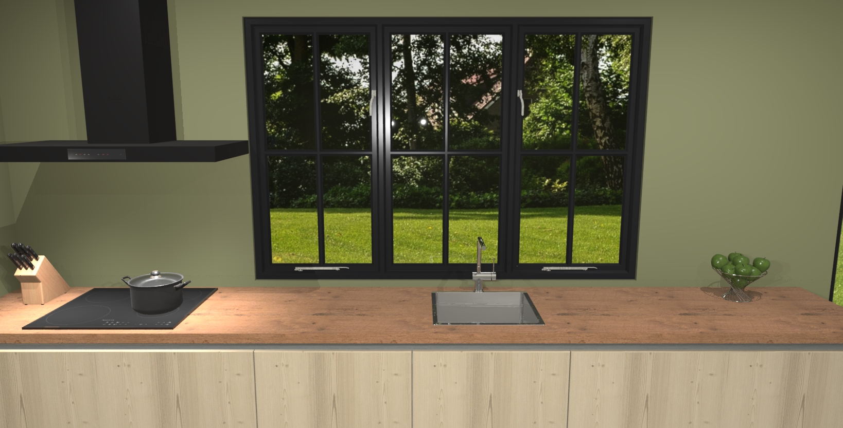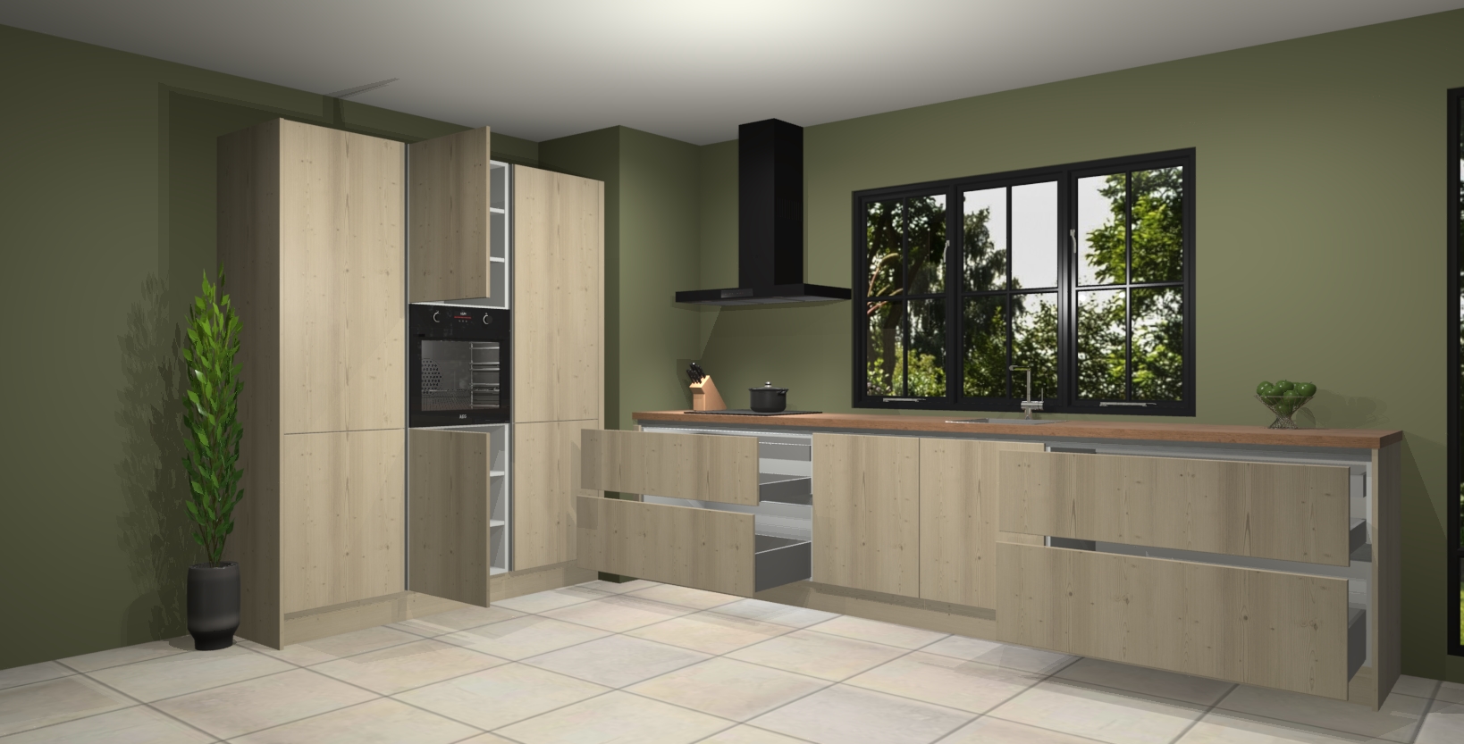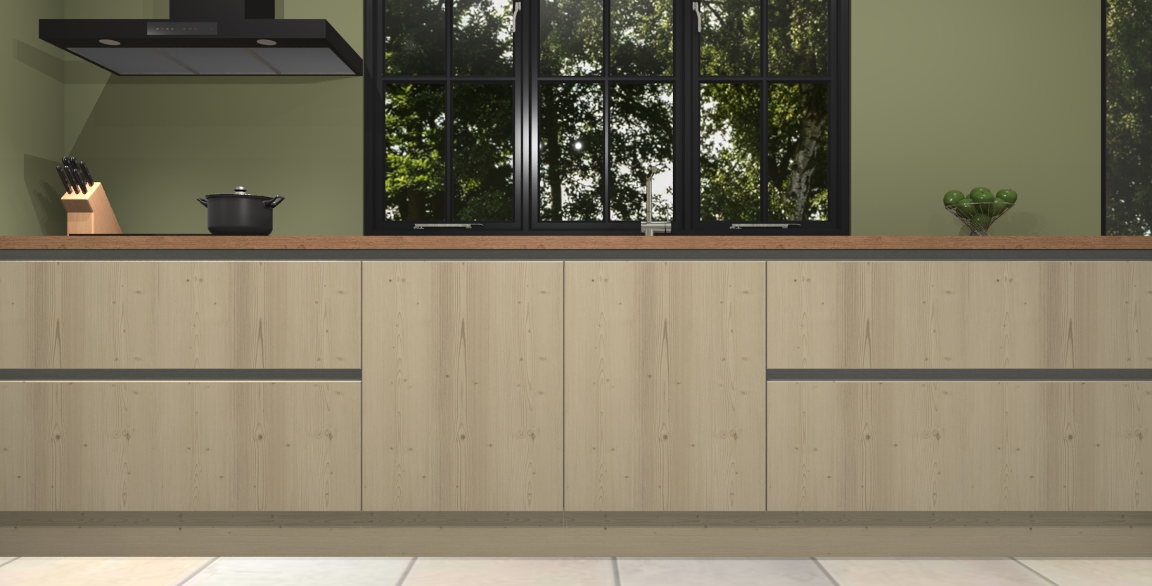 De softclose deuren openen en sluiten is ook heel eenvoudig - geniet van een moeiteloze keukenervaring, zelfs als er kinderen rondlopen. Voor extra gemak bij het plaatsen van uw bestelling bieden we ook een upgrade naar een kookplaat met geïntegreerde afzuiging.