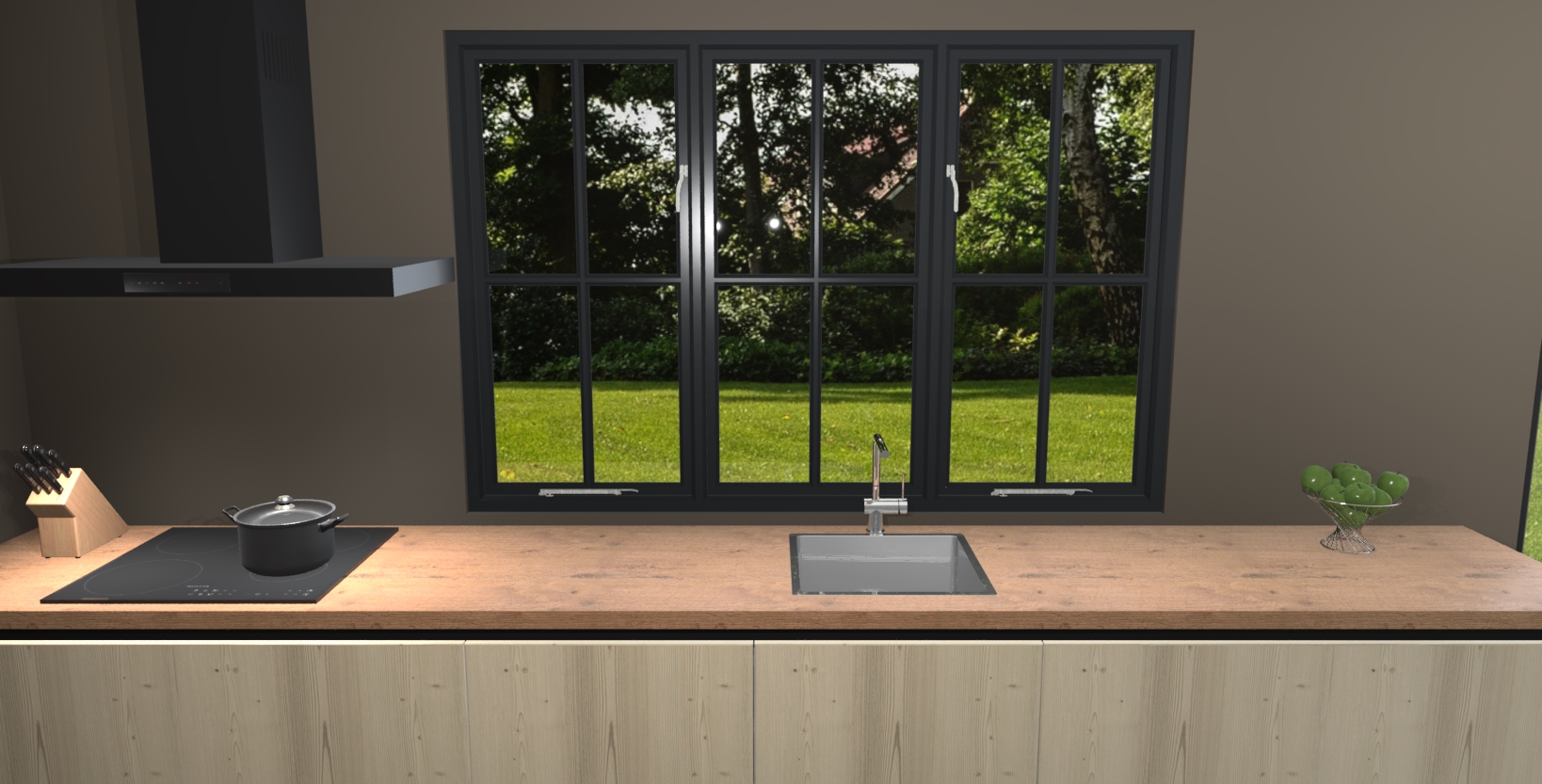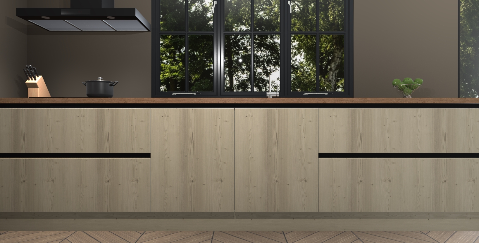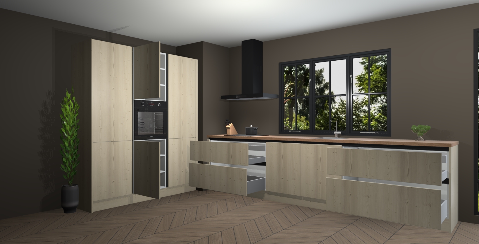 De softclose deuren openen en sluiten is ook heel eenvoudig - geniet van een moeiteloze keukenervaring, zelfs als er kinderen rondlopen. Voor extra gemak bij het plaatsen van uw bestelling bieden we ook een upgrade naar een kookplaat met geïntegreerde afzuiging.