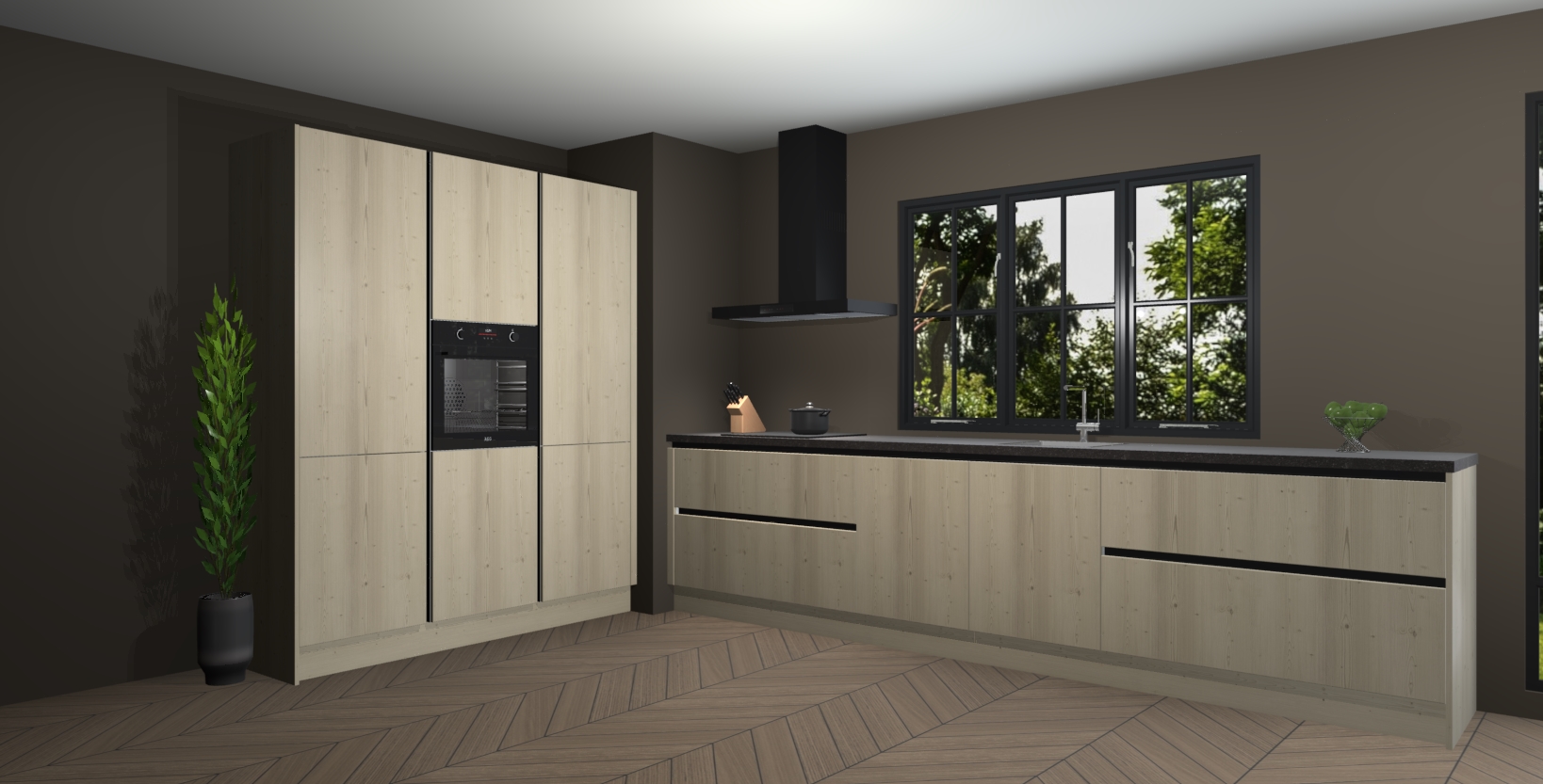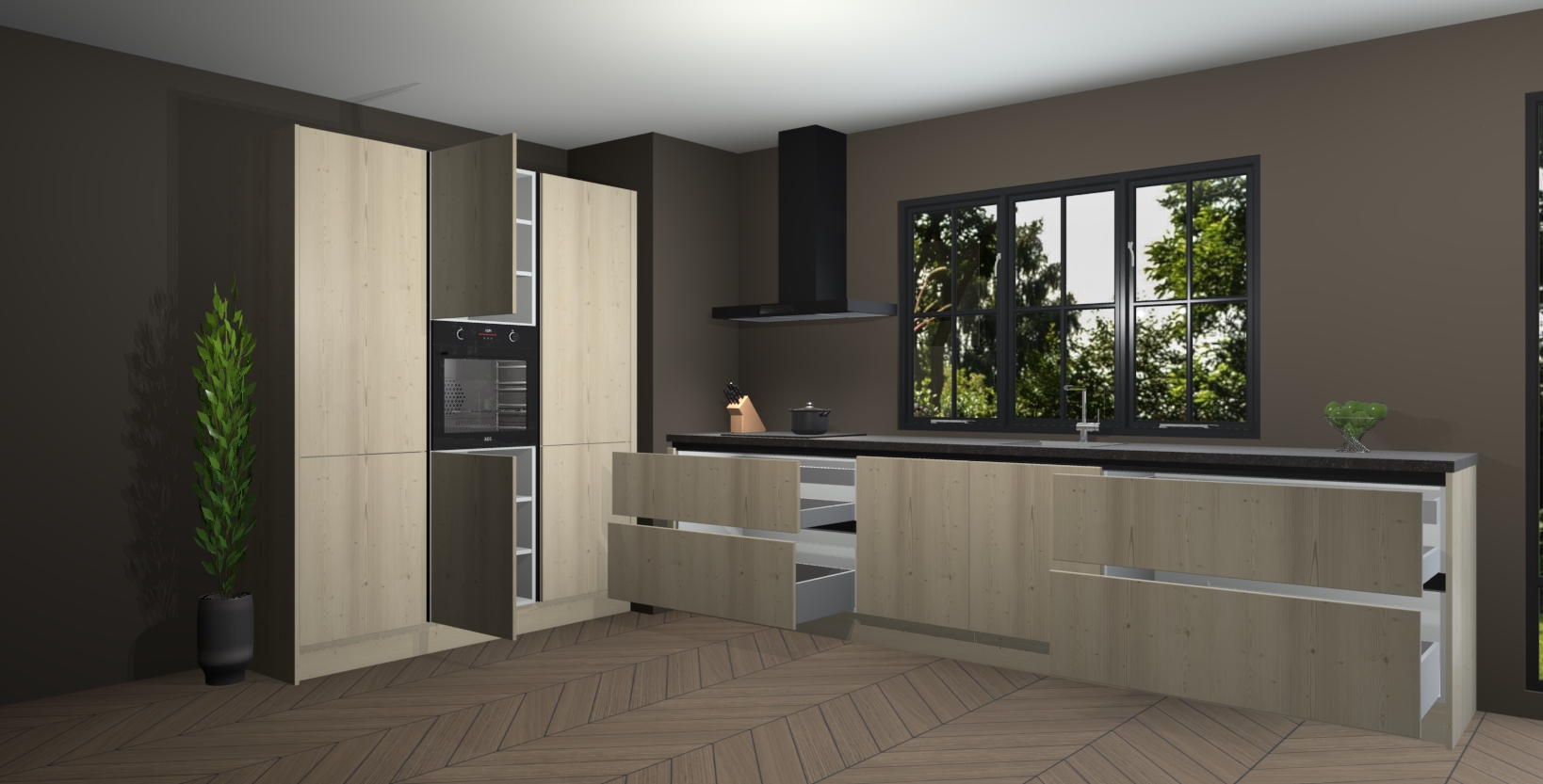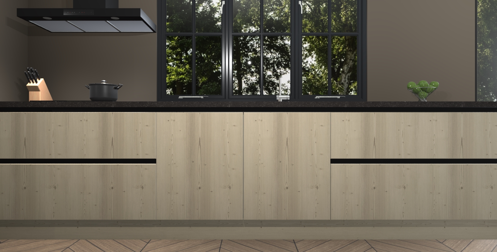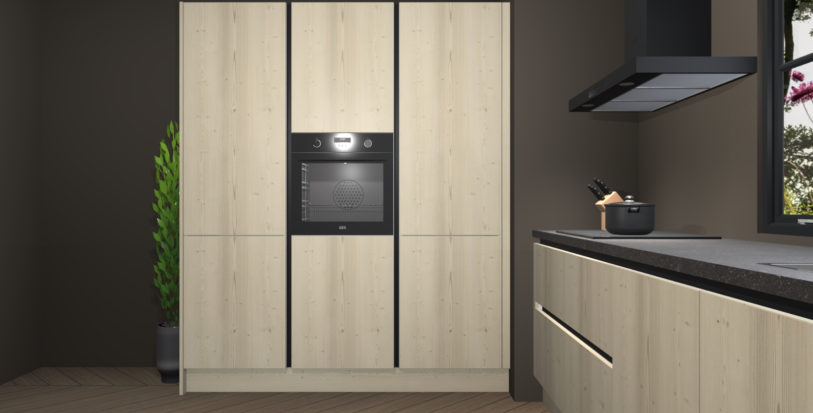De softclose deuren openen en sluiten is ook heel eenvoudig - geniet van een moeiteloze keukenervaring, zelfs als er kinderen rondlopen. Voor extra gemak bij het plaatsen van uw bestelling bieden we ook een upgrade naar een kookplaat met geïntegreerde afzuiging.
