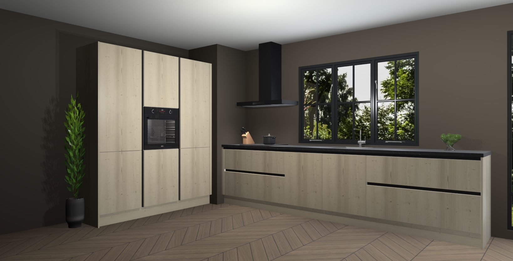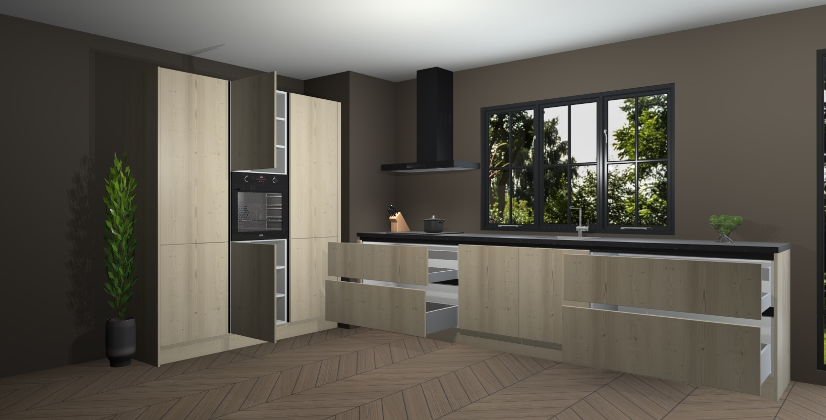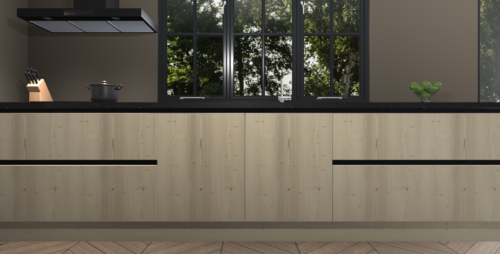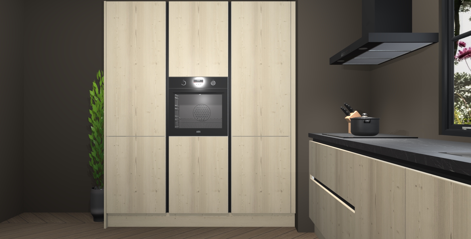 De softclose deuren openen en sluiten is ook heel eenvoudig - geniet van een moeiteloze keukenervaring, zelfs als er kinderen rondlopen. Voor extra gemak bij het plaatsen van uw bestelling bieden we ook een upgrade naar een kookplaat met geïntegreerde afzuiging.