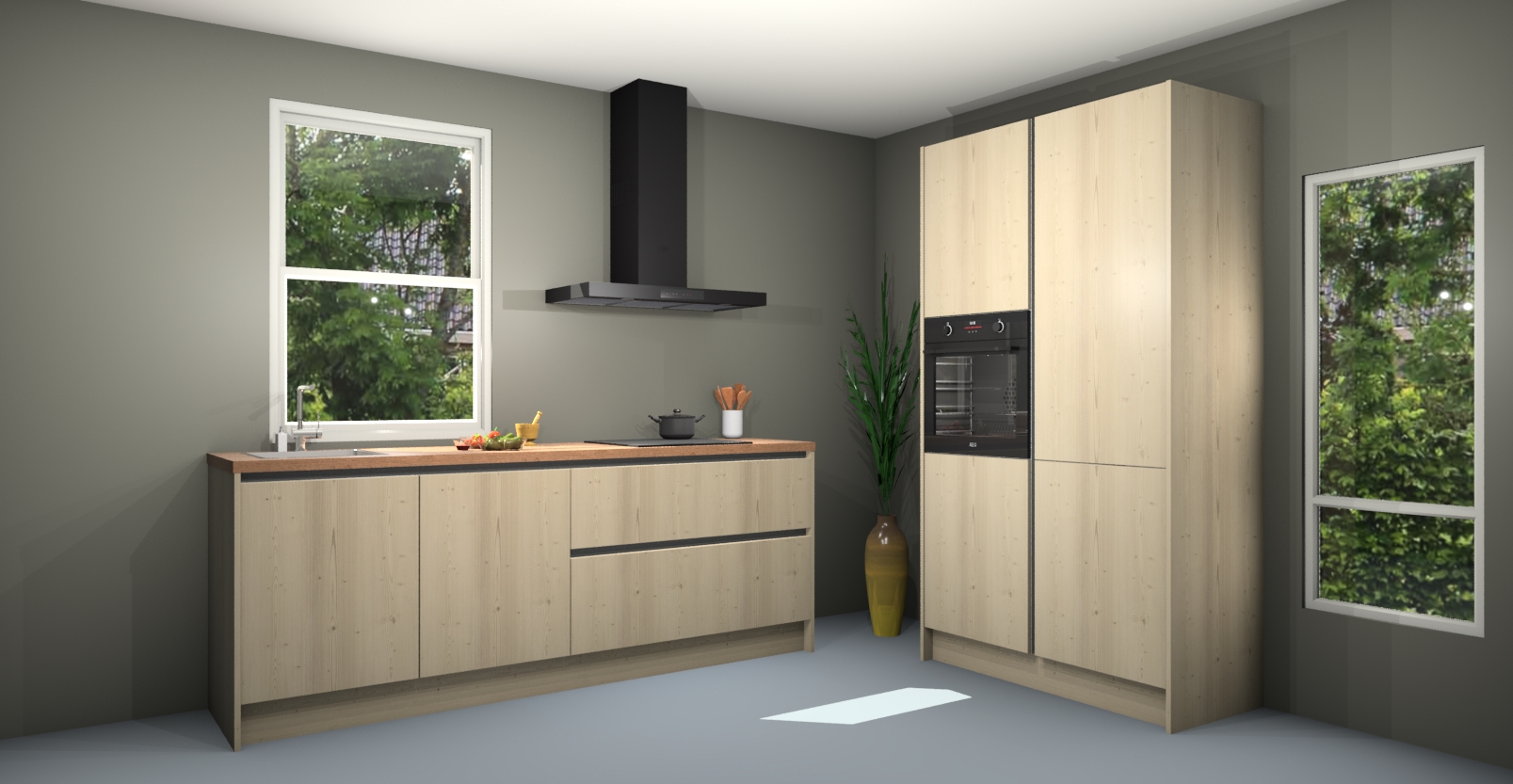 Ervaar het ultieme gevoel van warmte en gezelligheid in uw huis met de luxe Olm greeploze keuken Monaco! Deze ongelooflijk sfeervolle houtlook straalt heerlijke warmte uit en tovert elke keuken om tot een gezellig familiecentrum. Breng uw dromen tot leven met deze unieke keuken, ontworpen voor moeiteloze luxe en functionaliteit.