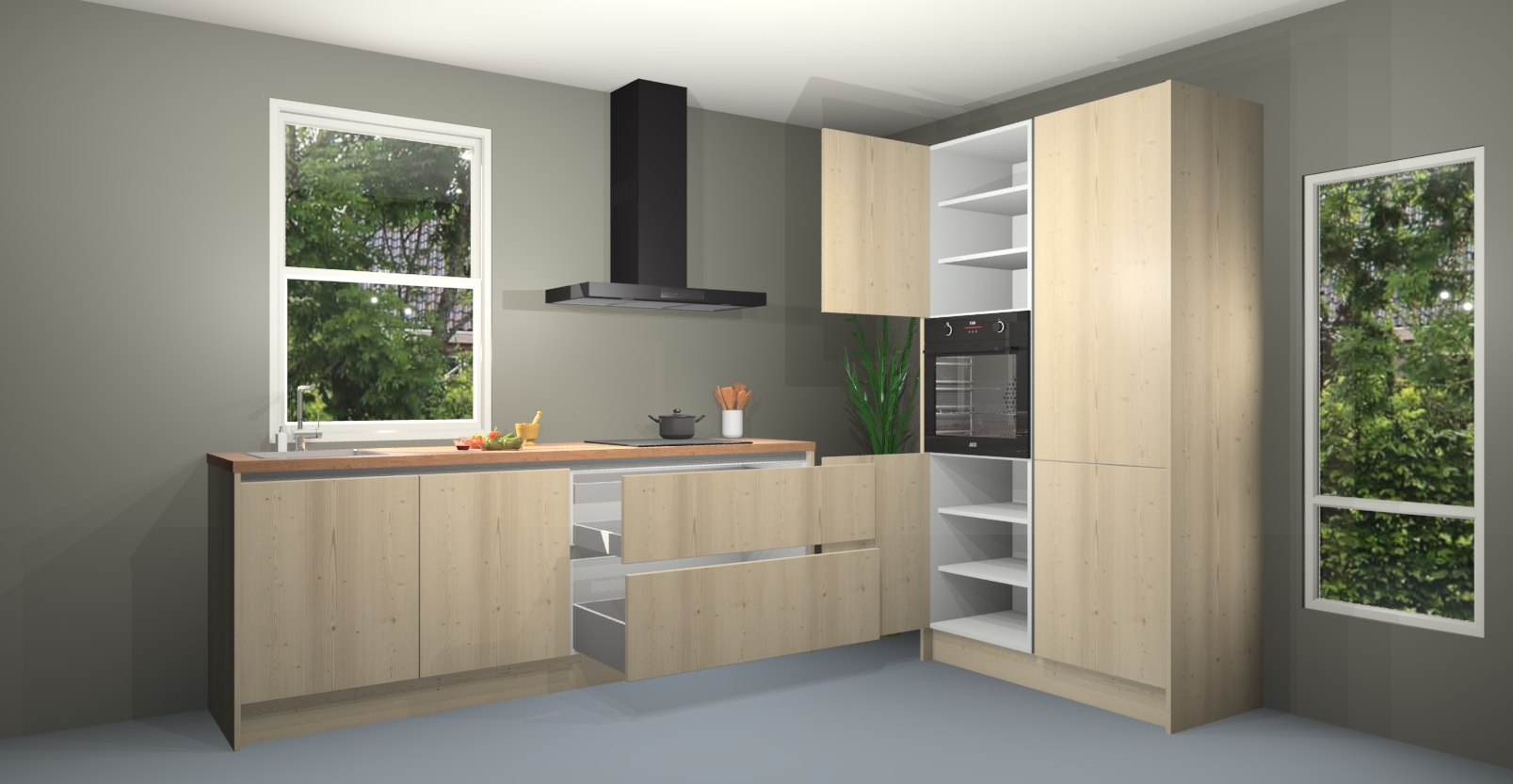 - Bij een hoekwerkblad zijn de hoeken in gevreesd en op maat gemaakt